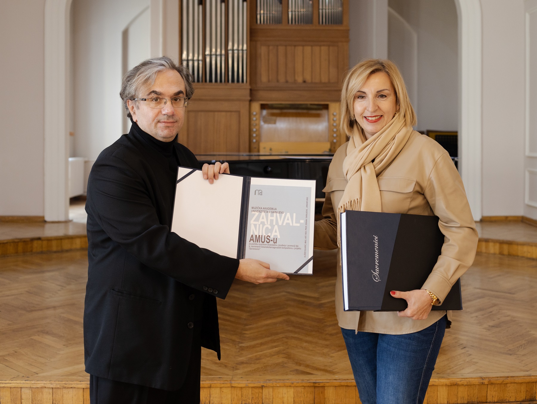 Alma Švrakić, direktorica programa Hayat TV, i Lejla Trnčić, generalna direktorica Stručne službe AMUS-a, svojim zalaganjem, inicijativama i posvećenim djelovanjem unutar respektabilnih institucija, uveliko su doprinijele kvalitetnoj realizaciji projekata saradnje sa Muzičkom akademijom.