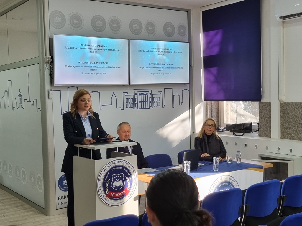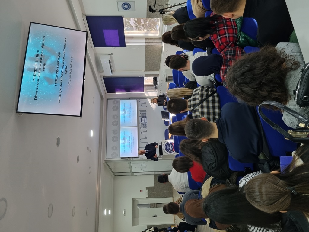 Na Univerzitetu u Sarajevu – Fakultetu za kriminalistiku, kriminologiju i sigurnosne studije, dana 22. 01. 2024. godine, održana je Druga studentska konferencija pod nazivom „Nasilje u porodici: kriminalistički, kriminološki i sigurnosni aspekti“. Konferencija je organizovana u sklopu predmeta Praktična nastava – Stručna praksa 5 kojeg pohađaju studenti treće godine dodiplomskog studija.