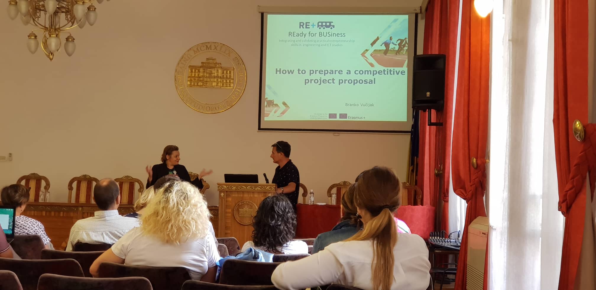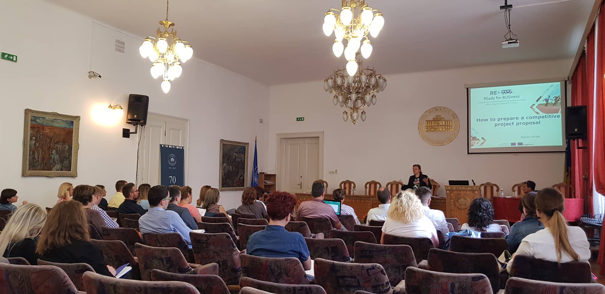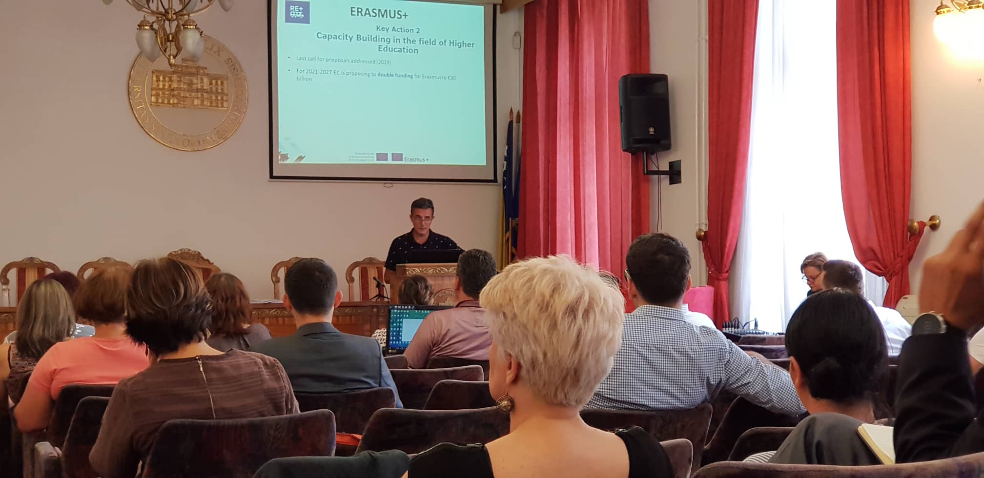 U okviru zadatog cilja za što uspješniju implementaciju međunarodnih projekata, a u skladu sa usvojenom Strategijom internacionalizacije Univerziteta u Sarajevu, Služba za međunarodnu saradnju je 25. juna 2019. godine organizirala Erasmus+ radionicu pod nazivom „Praktična iskustva provedbe jednog Erasmus+ CBHE projekta“. Predavač je bio iskusni, izvrsni i uvaženi prof. dr. Branko Vučijak sa Mašinskog fakulteta Univerziteta u Sarajevu, koji je sa učesnicima podijelio vlastita radna iskustva prilikom prijavljivanja projekta na Erasmus+ pozive, a zatim i iskustva tokom implementacije, koordinacije i praćenja odobrenog projekta REBUS.