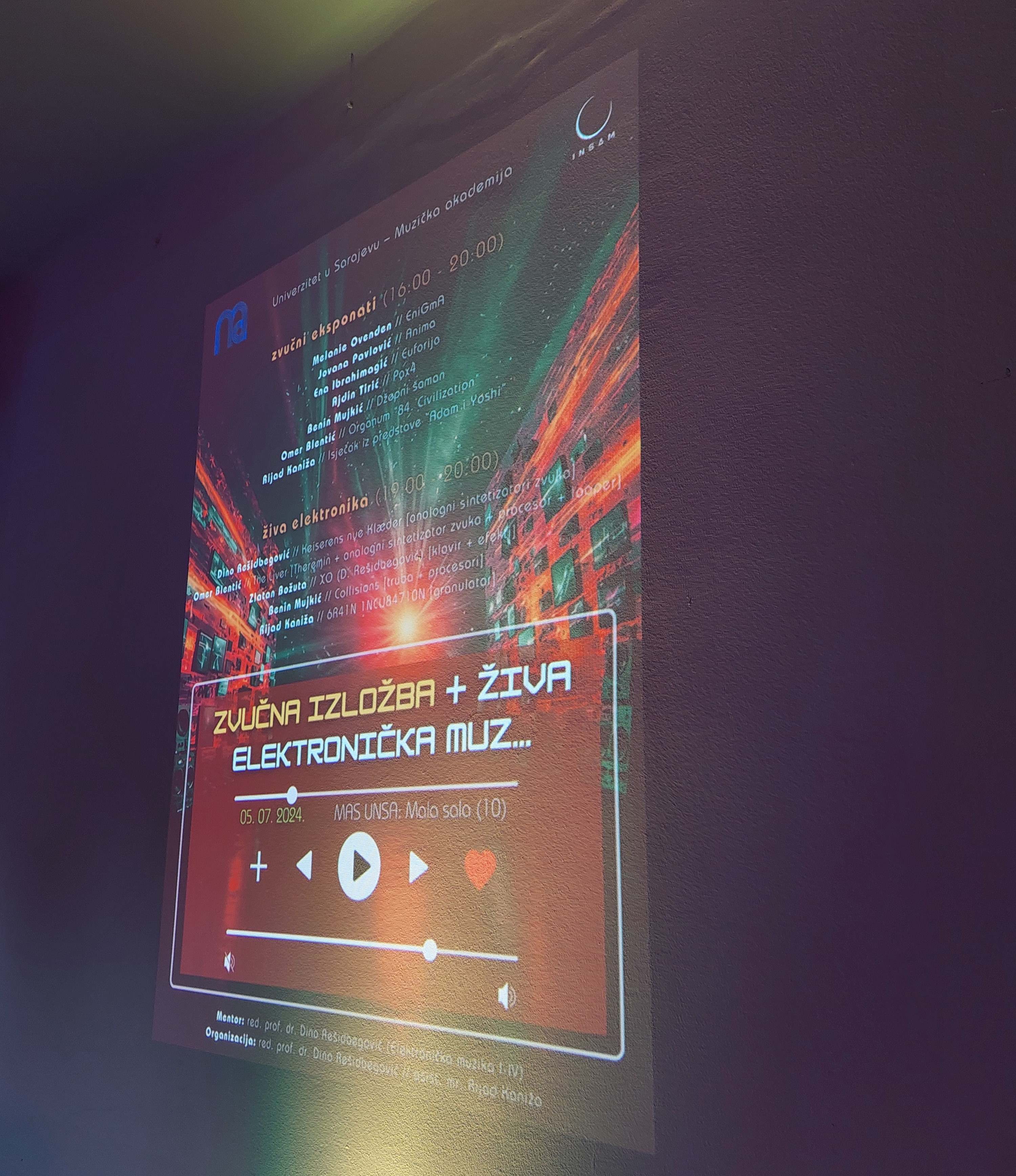 U petak, 5. jula 2024. godine, na Univerzitetu u Sarajevu – Muzičkoj akademiji, održana je peta po redu zvučna izložba i koncert žive elektroničke muzike.
