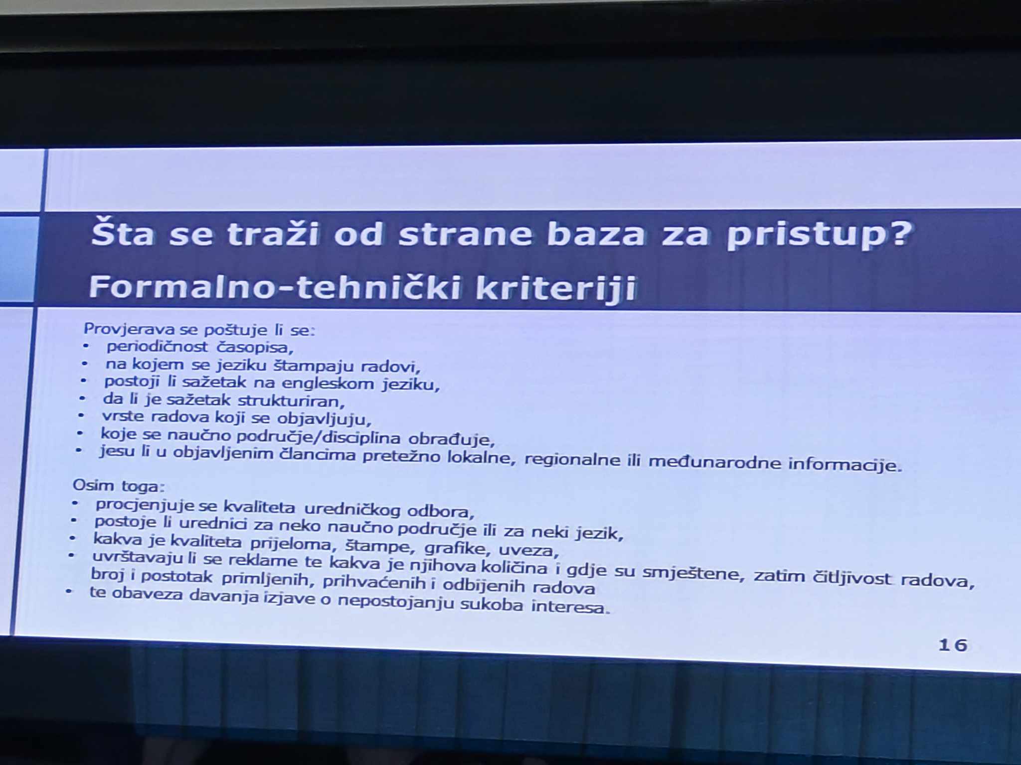 U okviru radionice održana su tri veoma korisna predavanja. O temi „indeksiranje naučnih publikacija govorila je mr. sc. Nadina Grebović-Lendo, direktorica Biblioteke Univerziteta u Sarajevu. Adisa Žero, MA i Anja Mastilović, MA iz Nacionalne i univerzitetske biblioteke BiH predstavile su temu „Da li je indeksiranje Sizifovski posao?“, a mr. sc. Vesna Abadić, direktorica Univerzitetske biblioteke u Kragujevcu je govorila o temi „Kategorizacija naučnih časopisa u Republici Srbiji: stanje i izazovi“.
