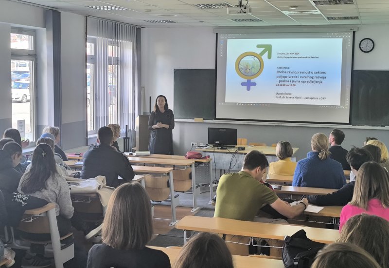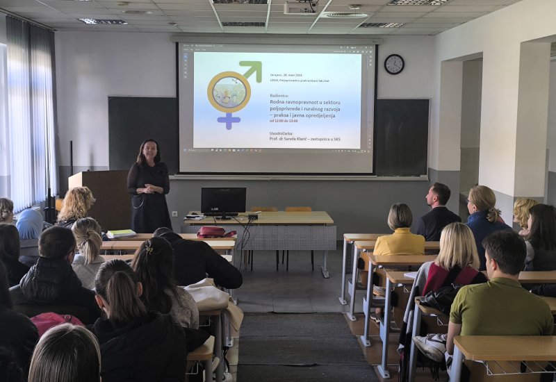 Radionica, održana na Poljoprivredno-prehrambenom fakultetu, bila je prilika da se predstavi da je rodna ravnopravnost jedan od proklamiranih, i od BiH prihvaćenih, razvojnih ciljeva UN-a, u sklopu Agende 2030. Javno je iskazana podrška jačanju rodne ravnopravnosti u svim sferama BiH, ali u praksi iskazana opredjeljenja ne rezultiraju poboljšanjem, što ima odraza i na razvojni potencijal svakog od sektora ekonomije, ali i bh. društva u cjelini. Stoga, ova je radonica ciljala da otvori prostor za diskusiju o trenutnim zakonskim okvirima, o nivou razumijevanja ove teme i od javnosti i od donosilaca odluka, ali i da propita na koji način „struka“ tretira ovo pitanje, a u svjetlu stvarnih problema i potreba. Radionica je ukazala na osnovne pravce djelovanja u ovoj oblasti radi osiguranja pomoći donosiocima odluka da naprave progres i pripreme inicijative.