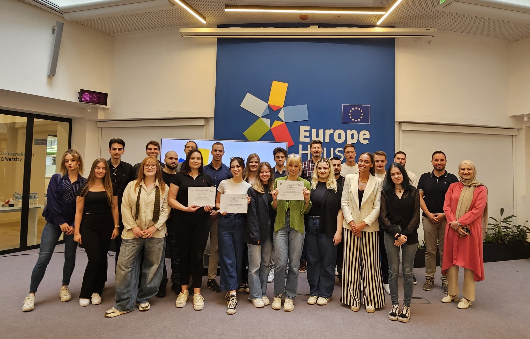 Studenti Ekonomskog fakulteta i Akademije likovnih umjetnosti su tri mjeseca u 7 multidisciplinarnih timova vrijedno radili na izradi marketing komunikacijskih planova za Europe House. S obzirom da je praktična nastava bila organizovana kao takmičenje, tri tima su ušla u finale i prezentirali svoje MK planove. Edin Atlić, EH project leader, i Amela Hrasnica, Communication manager EH, su ove projekte ocijenili sa najvećim ocjenama!