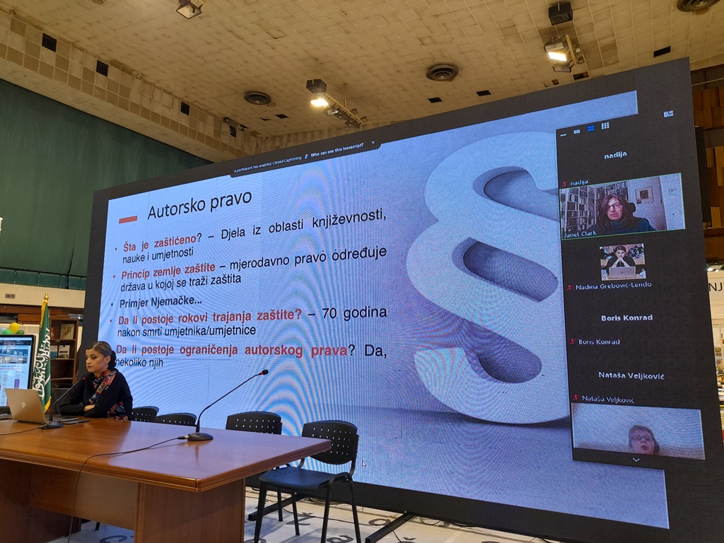 Na ovogodišnjem Sajmu knjiga i učila, u petak 13. aprila 2023. godine održano je predavanje u organizaciji Goethe-Instituta BiH i Biblioteke Univerziteta u Sarajevu. Tema predavanja AUTORSKA PRAVA upotpunila je fokus ovogodišnjeg Sajma.