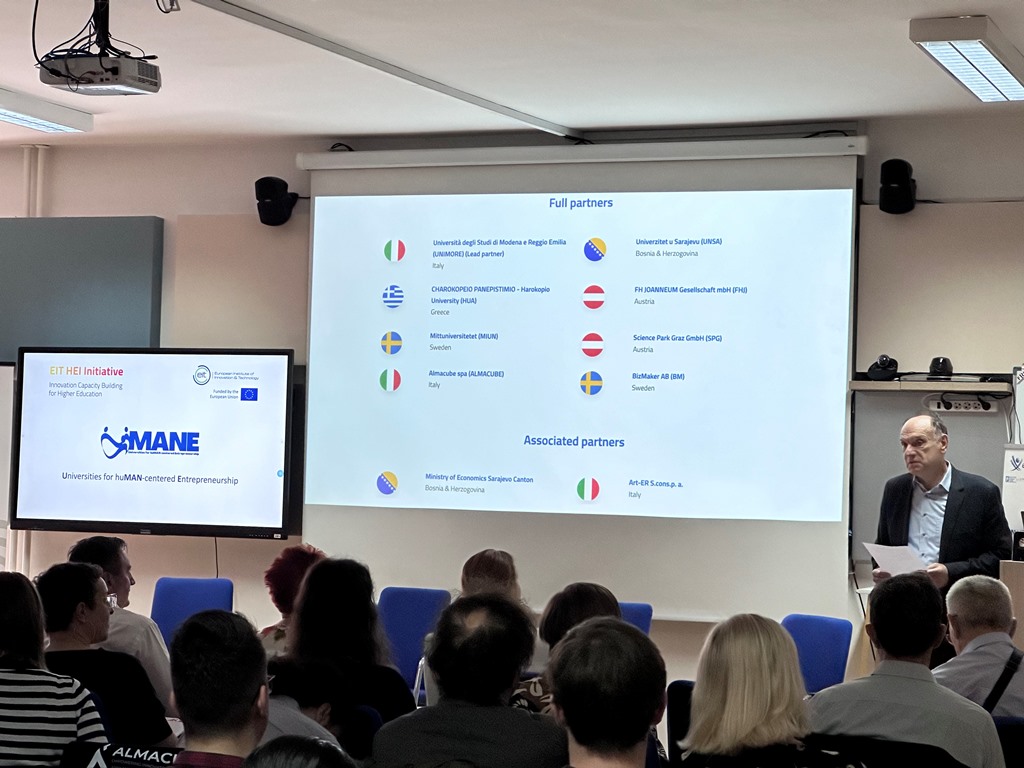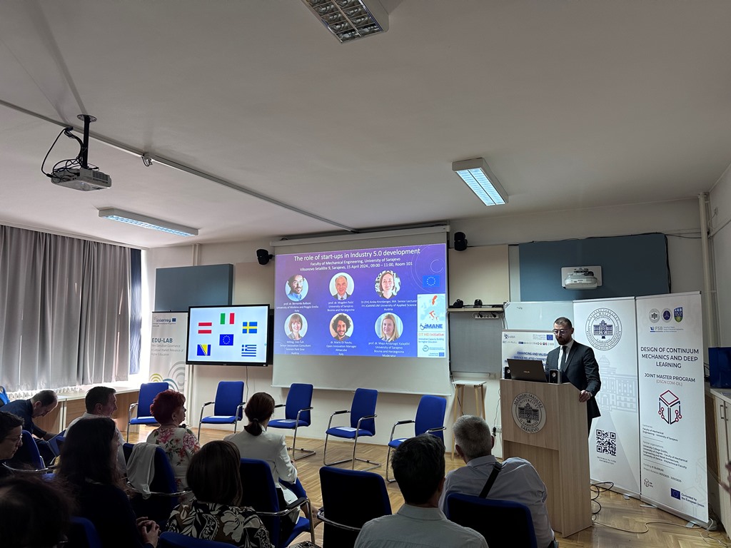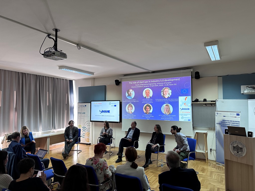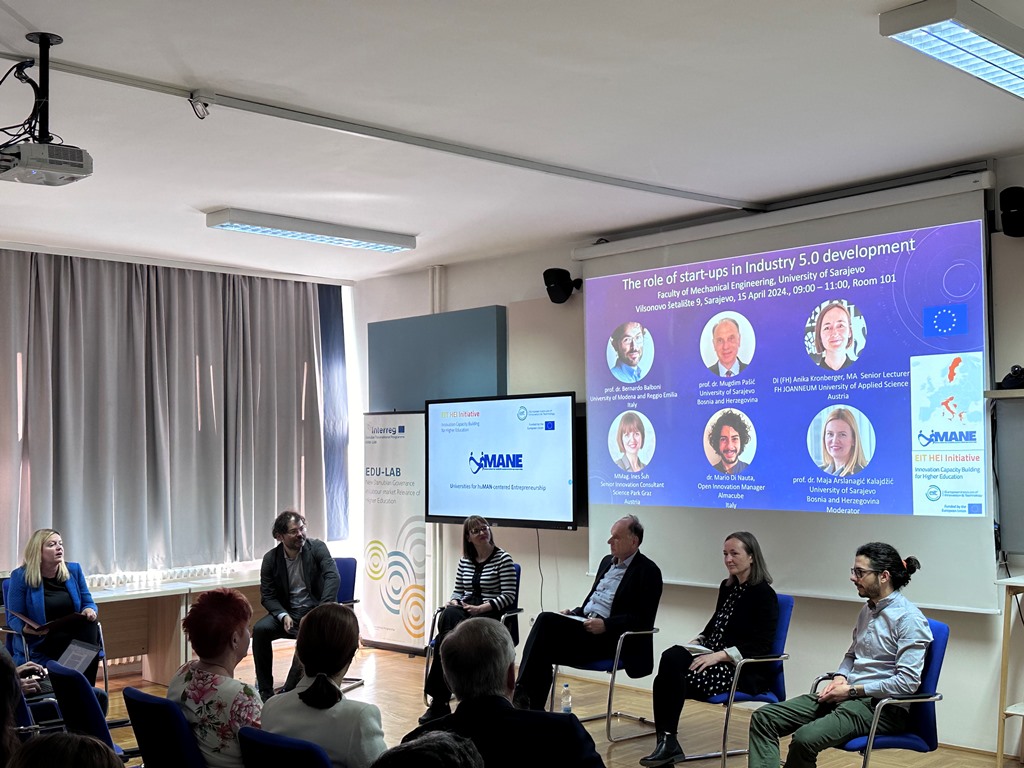 Odsjek za industrijsko inžinjerstvo i menadžment Univerziteta u Sarajevu - Mašinski fakultet je organizovao panel diskusiju na temu “Uloga start-upova u razvoju Industrije 5.0” u okviru projekta Evropskog instituta za inovacije i tehnologiju Universities for huMAN-centered Entrepreneurship - UMANE. U realizaciji projekta, pored Univerziteta u Sarajevu - Mašinski fakultet, učestvuju i četiri univerziteta iz Evropske unije University of Modena and Reggio Emilia iz Italije, FHJ Joanneum University of Applied Science iz Austrije, Mid Sweden University iz Švedske i Harakopio University of Athens iz Grčke, kao i tri tehnološka parka Science Park Graz iz Austrije, Almacube iz Italije i BizMaker AB iz Švedske. Pridruženi članovi projekta su Ministarstvo privrede Kantona Sarajevo i Art-ER S.consp.a. iz Italije. U okviru Panela naglašena je potreba i važnost start-upova za razvoj ekonomije i inovacija, sa posebnim osvrtom na modalitete i načine motivisanja i poticanja mladih ljudi za kreiranje sopstvenih start-upova. Tokom diskusije prezentirane su najbolje prakse i iskustva prisutnih univerziteta i tehnoloških parkova, kao i način kreiranja lokalnog ekosistema. Ukazano je na potrebu saradnje i sinergije svih zainteresovanih strana: vlade, akademije, tehnoloških parkova, industrije i istraživačkih centara.