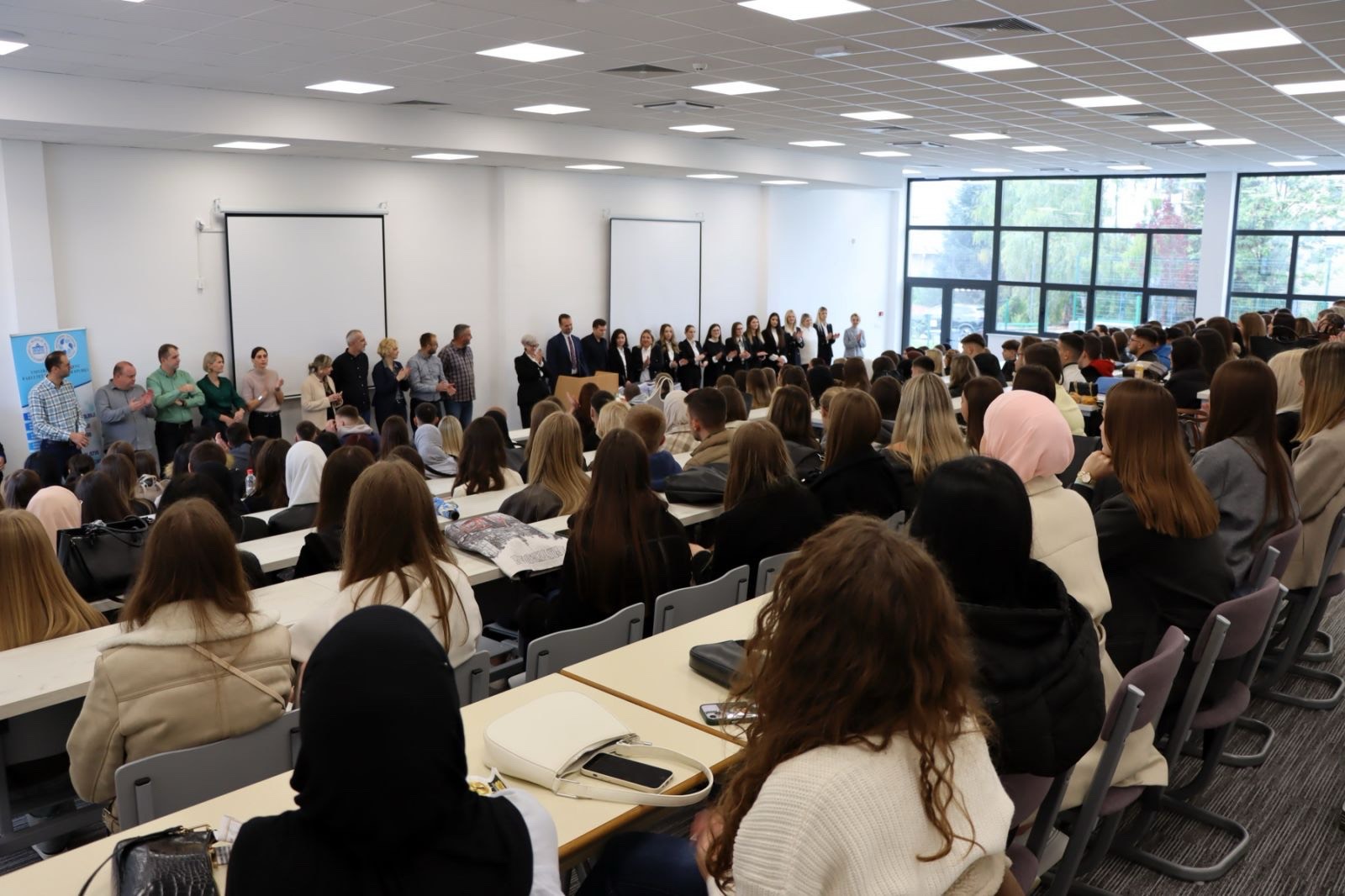 U obraćanju studentima koji su danas počeli pohađati ovaj fakultet, dekanica Pašalić zahvalila je ministru Kalamujiću, koji je, kako je rekla, najviše zaslužan što studenti danas imaju priliku učiti u ovome predivnom prostoru.
