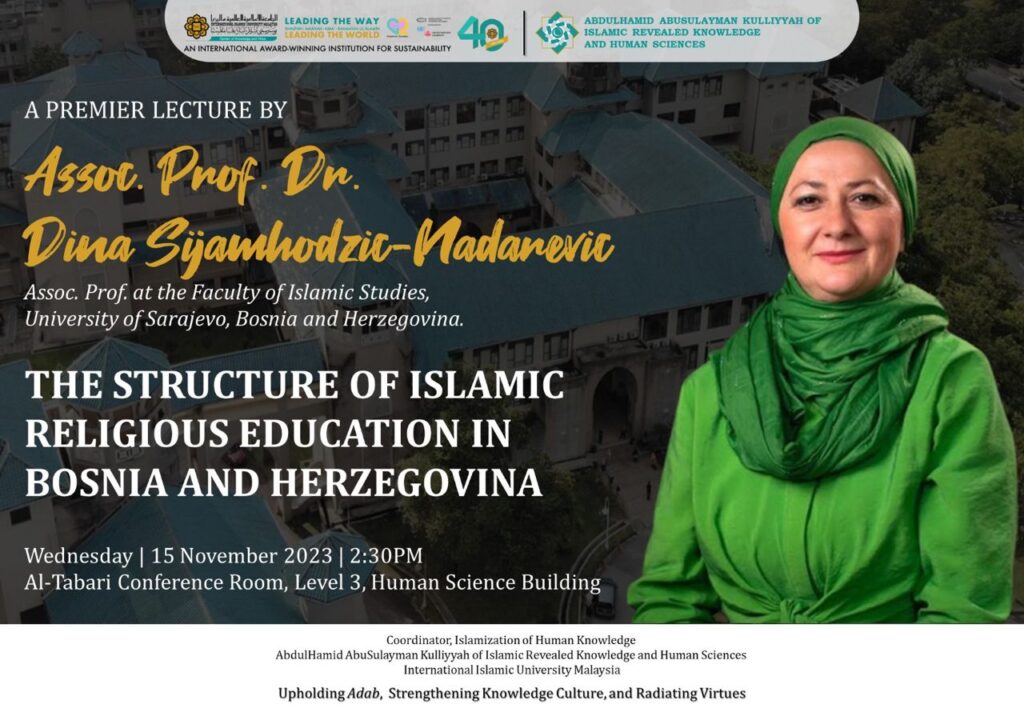 Profesorica dr. Dina Sijamhodžić-Nadarević (Fakultet islamskih nauka UNSA) u periodu od 11. do 17. novembra 2023. godine boravila je na Internacionalnom islamskom univerzitetu u Maleziji (IIUM) na poziv Univerziteta i IIIT-a (International Institute of Islamic Thought East and South East Asia) i održala serijal predavanja na nekoliko fakulteta i instituta kao gost predavač.