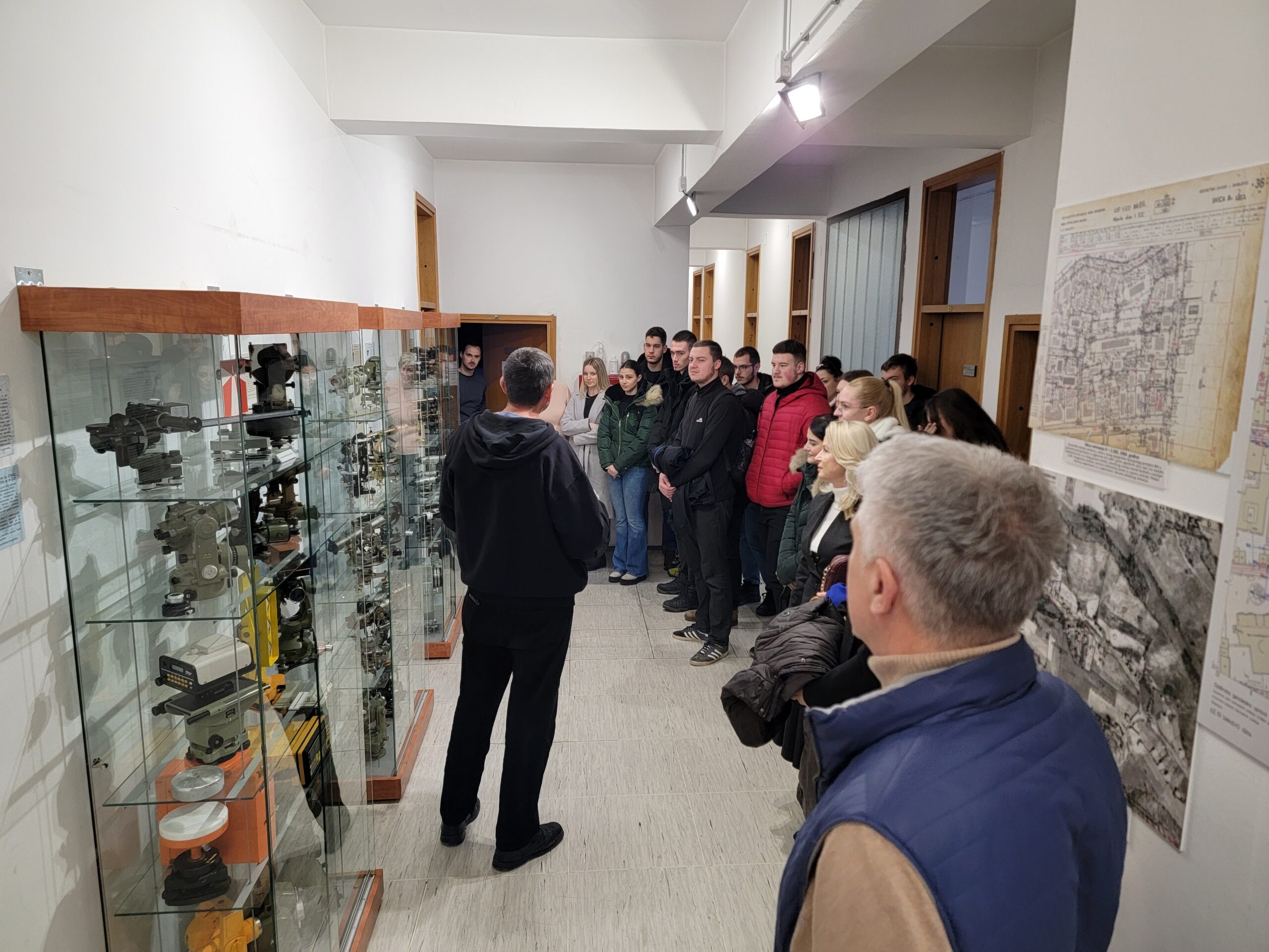 Ugodno druženje je nastavljeno posjetom stalnog izložbenoj postavci “Geodetsko naslijeđe Bosne i Hercegovine” koja se nalazi u hodniku Odsjeka za geodeziju i geoinformatiku. Profesori i učenici škole su se tom prilikom upoznali sa geodetskim instrumentima, pomoćnim priborom i kartografskim proizvodima iz vremena Osmanskog carstva, Austro-Ugarske monarhije, Kraljevine Jugoslavije, SFRJ i Republike Bosne i Hercegovine.
