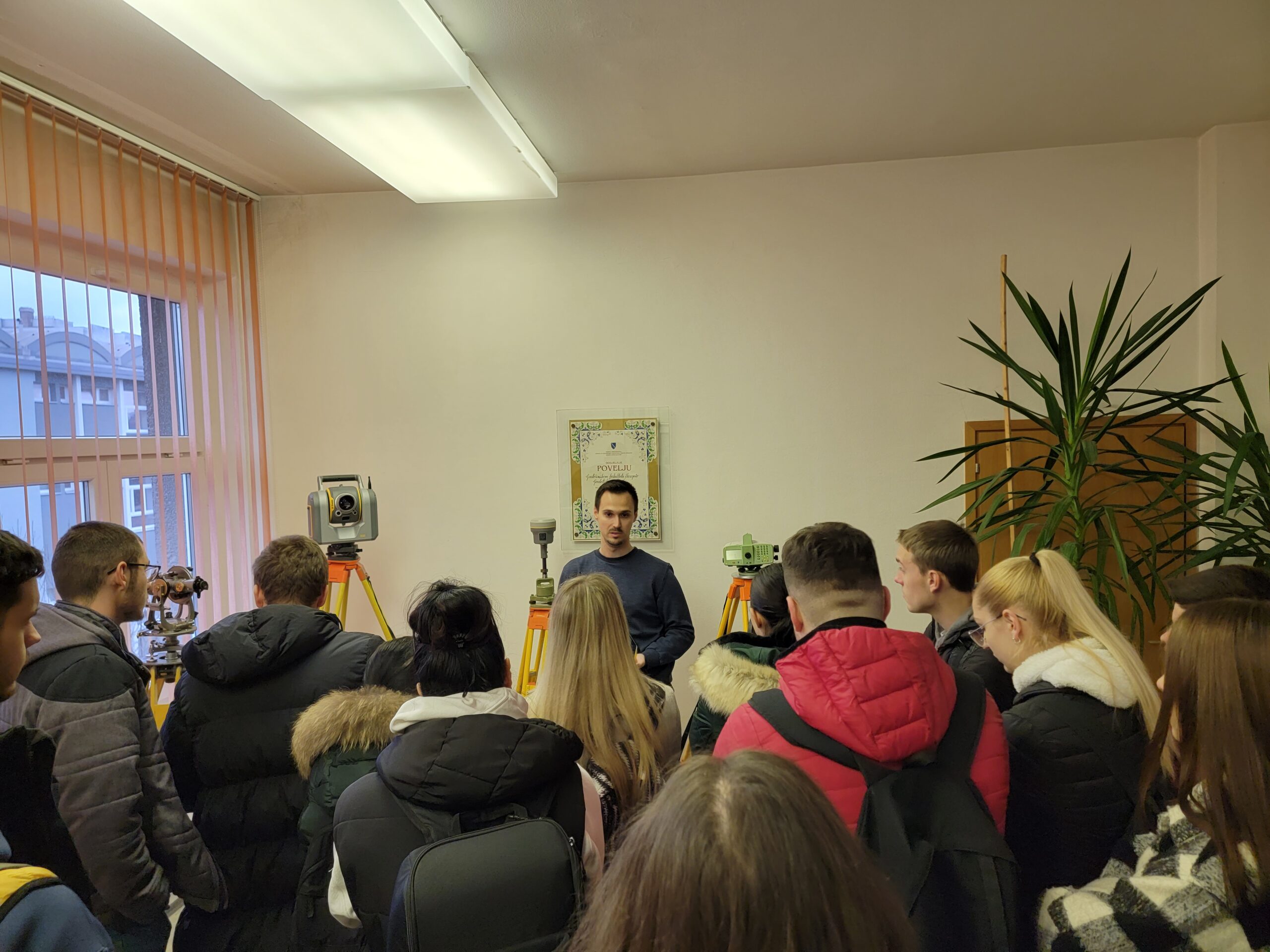 Osoblje Univerziteta u Sarajevu – Građevinskog fakulteta – Odsjeka za geodeziju i geoinformatiku imalo je čast da 15. 12. 2023. godine upriliči doček profesorima i učenicima četvrtog razreda Srednje građevinsko–geodetske škole iz Sarajeva, smjer geodezija. Učenici su imali priliku da upoznaju instituciju i studij Geodezije i geoinformatike kroz prezentaciju u okviru koje su istaknute sve bitne informacije o studiju, geodetskim instrumentima i softverima koji se koriste u nastavi, aktuelnostima iz oblasti geodezije u savremenom dobu, te su prikazana iskustva bivših studenata koji danas rade u domaćim i inostranim kompanijama i državnom sektoru.