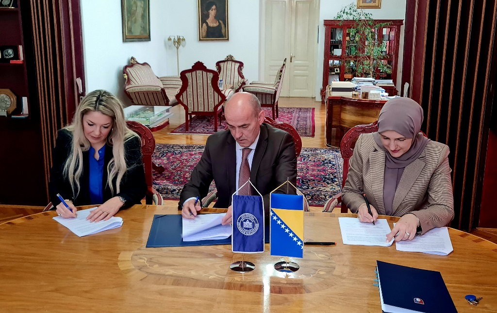 Sporazum su potpisali gospođa Naida Hota-Muminović, ministrica za odgoj i obrazovanje KS, prof. dr. Adna Mesihović, ministrica za nauku, visoko obrazovanje i mlade KS, i prof. dr. Rifat Škrijelj, rektor Univerziteta u Sarajevu, u prisustvo pomoćnika ministrica i prorektora Univerziteta.