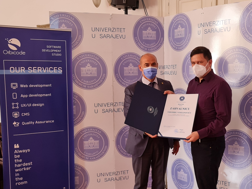 Softver i njegove komponente predstavili su Emir Čaušević, direktor razvoja kompanije Orbicode d.o.o., i Merisa Kurtanović, šefica računovodstva Univerziteta u Sarajevu, nakon čega su rektor prof. dr. Rifat Škrijelj i prorektor za finansije prof. dr. Tarik Zaimović, predsjedavajućoj i članovima Stručne komisije jedinstvenog Finansijskog informacionog sistema UNSA uručili zahvalnice za učešće i uspješan rad na razvoju ovog sistema.