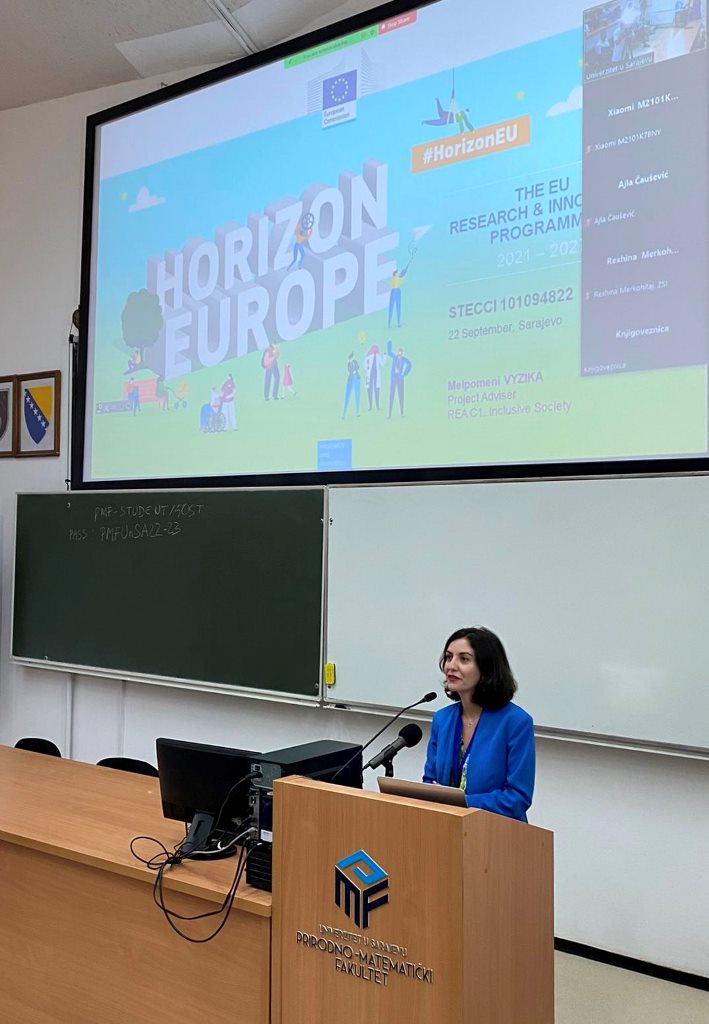 Predstavnica Evropske komisije Melpomeni Vyzika (Project Adviser, REA) predstavila je mogućnosti apliciranja na Horizon Europe projekte; šef UNESCO ureda u Sarajevu Siniša Šešum je govorio o stećcima kao svjetskoj baštini, nakon čega je dekan Prirodno-matematičkog fakulteta UNSA prof. dr. Nusret Drešković prezentirao projekat „STone monument Ensambles and the Climate Change Impact“ – STECCI kojim koordinira Univerzitet u Sarajevu - Prirodno-matematički fakultet.