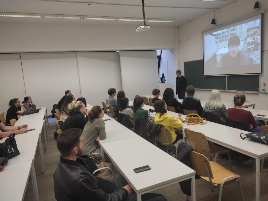 Nakon predavanja studenti su imali priliku postaviti pitanja i uključiti se u kratku diskusiju. Studenti slikarstva Okinawa prefekturalnog univerziteta umjetnosti i profesorica Motomura Kanako su preko Zooma pratili predavanje.