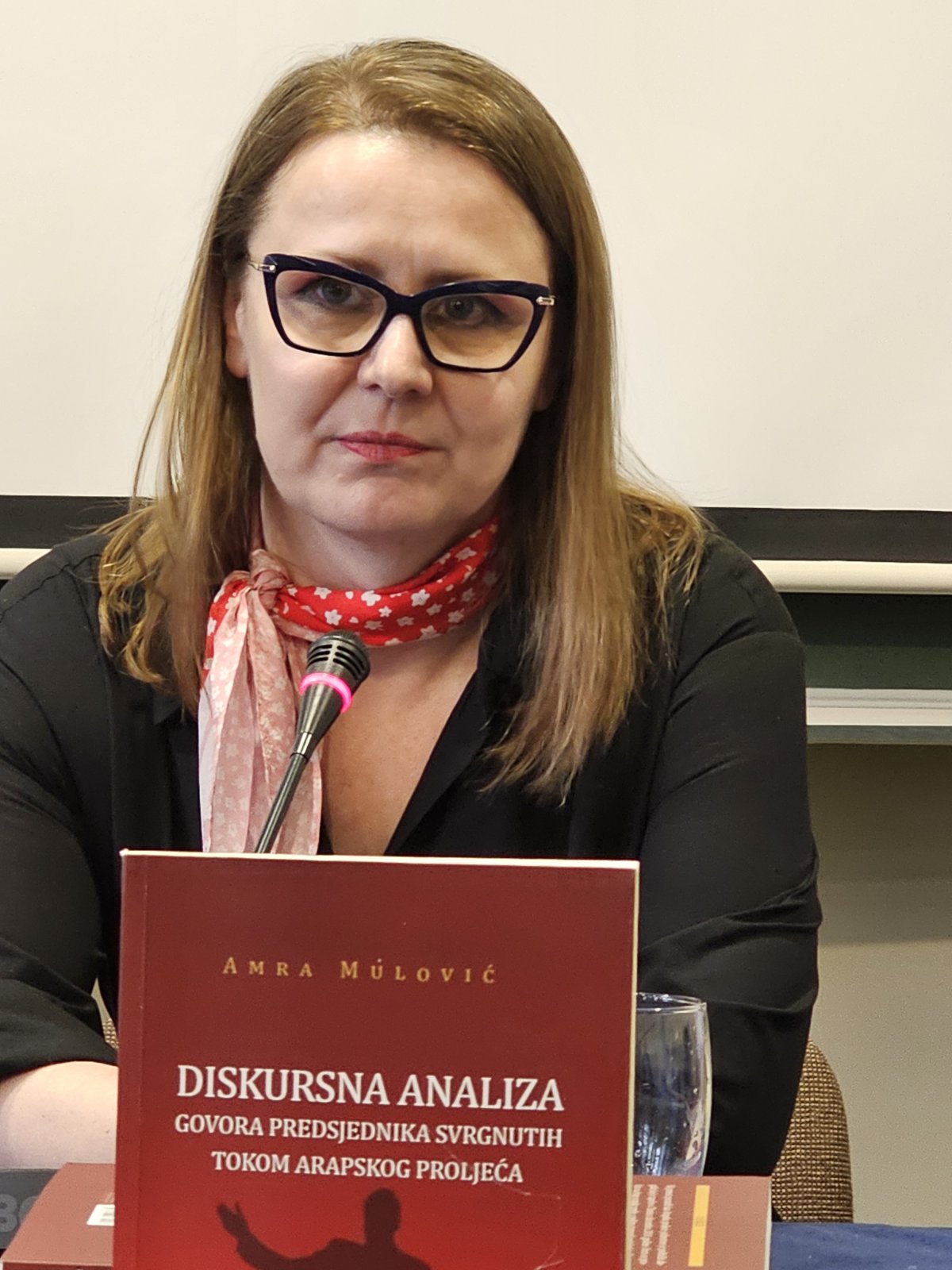 U četvrtak, 25. maja 2023. godine, u organizaciji Katedre za arapski jezik i književnost, Odsjeka za orijentalnu filologiju Filozofskog fakulteta u Sarajevu, u prepunom malom amfiteatru Filozofskog fakulteta je održana promocija knjige Diskursna analiza govora predsjednika svrgnutih tokom Arapskog proljeća autorice Amre Mulović.