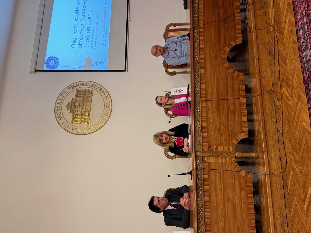 Izlagači su upoznali prisutne sa Projektom SMEQA - prof. dr. Malik Čabaravdić (Univerzitet u Zenici), Akreditacijom studijskih programa - pripremi visokoškolskih ustanova - prof. dr. sc. Luciana Boban (Sveučilište u Mostaru), te Osiguranjem kvaliteta visokog obrazovanja zasnovanog na ishodima učenja - prof. dr. Dušanka Bošković (Univerzitet u Sarajevu), nakon čega je održana i diskusija.
