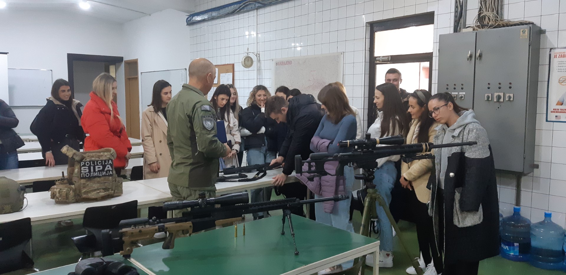 Studenti četvrte godine Fakulteta za kriminalistiku, kriminologiju i sigurnosne studije Univerziteta u Sarajevu, u okviru predmeta „Stručna praksa 8“, danas, 18. aprila, u pratnji višeg asistenta Kenana Hodžića, MA, posjetili su SIPA-u i Jedinicu za specijalnu podršku.