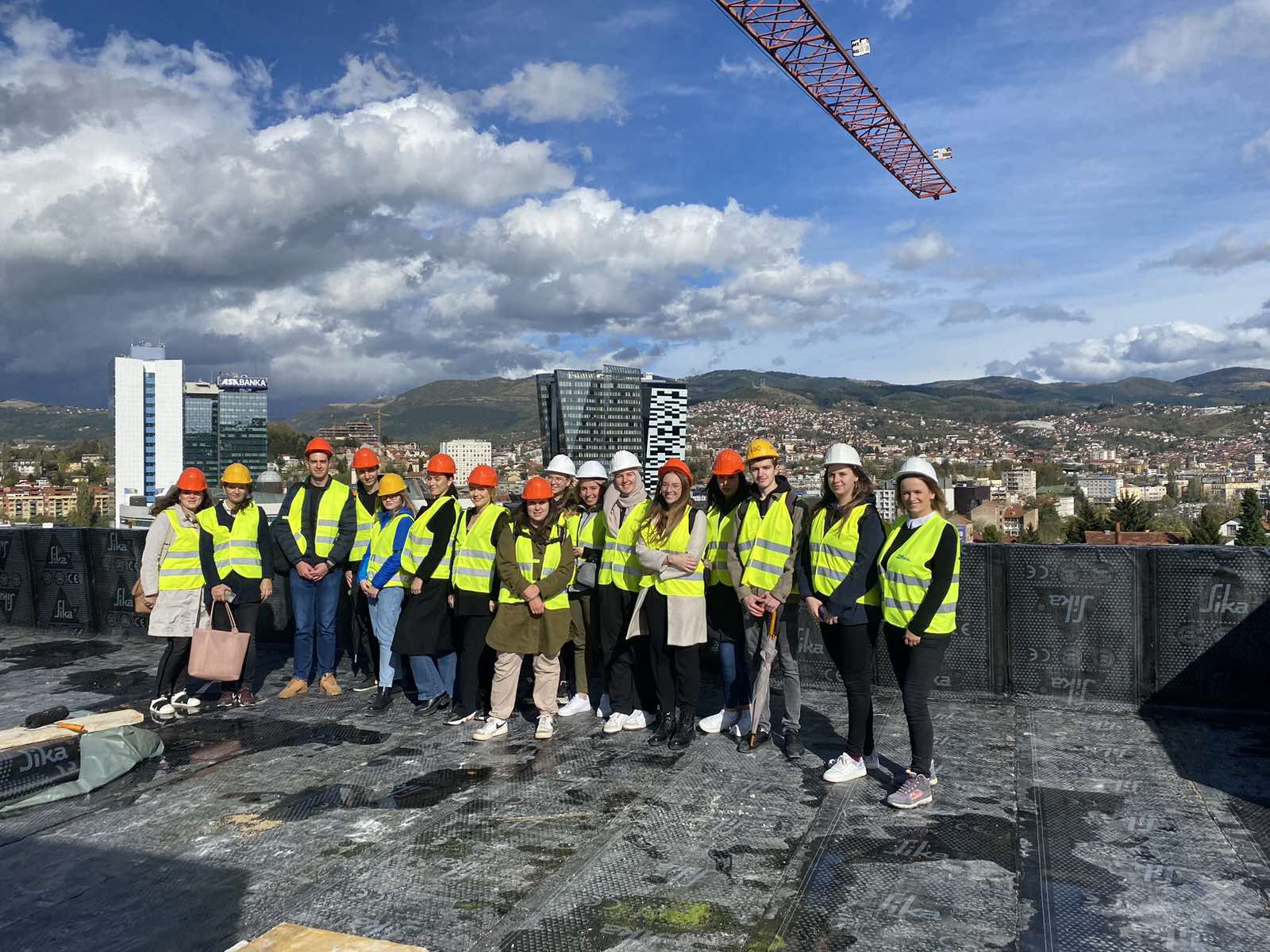 Tokom posjete, studenti su pored unutarnjih instalacija vodovoda i kanalizacije, koje izvodi podizvođačka firma “Edo-Voda” d.o.o. Sarajevo, imali priliku vidjeti različite faze izgradnje kompletne konstrukcije objekta, od podrumakih etaža do krovne konstrukcije.