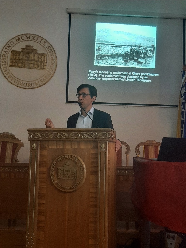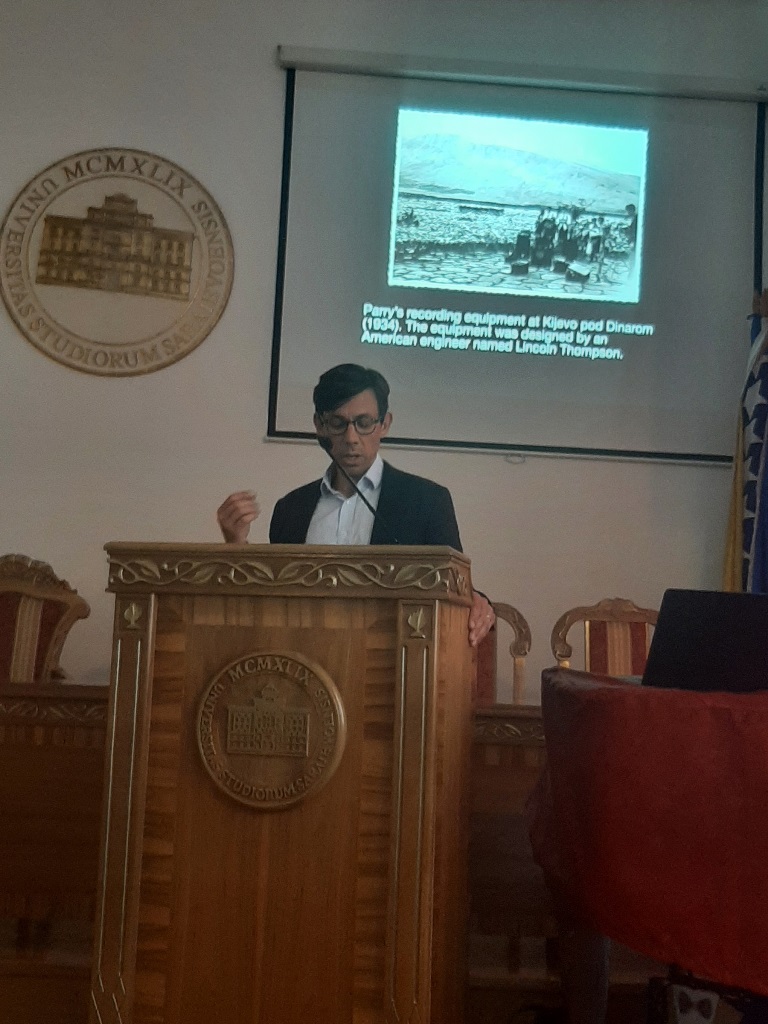 U utorak, 27. 6. 2023. godine prof. dr. David Elmer (Harvard University) održao je predavanje na temu Milman Parry and the Milman Parry Collection of Oral Literature. Nakon predavanja održanog u svečanoj sali Rektorata Univerziteta u Sarajevu, dr. Elmer i studenti Harvard University su posjetili Institut za muzikologiju Muzičke akademije Univerziteta u Sarajevu. Upoznali su se sa narodnom muzičkom tradicijom Bosne i Hercegovine, arhivskom građom Instituta za muzikologiju, te pogledali izložbe 10 godina ICTM Nacionalnog komiteta u Bosni i Hercegovini, 20 godina Instituta za muzikologiju i 120 godina od rođenja akademika Cvjetka Rihtmana. Prof. dr. Elmer i acc. prof. dr. Jasmina Talam su razgovarali o budućoj saradnji vezanoj za arhivsku građu Milmana Parry-a i etnomuzikološkog arhiva Instituta za muzikologiju.