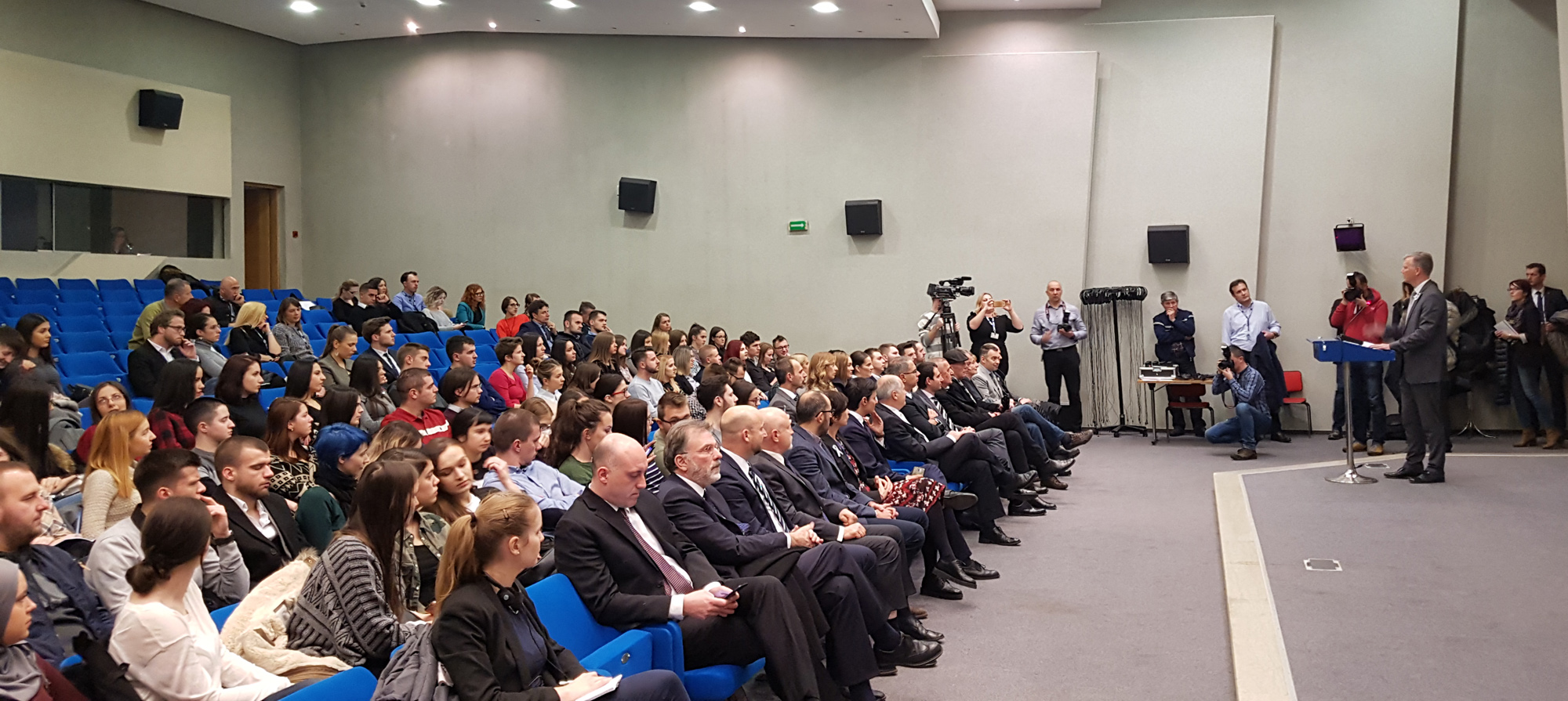 Studentima su se obratili šef misije OSCE-a u Bosni i Hercegovini, ambasador Bruce G. Berton, te Nicola Minasi, ambasador Italije u Bosni i Hercegovini, koji su predstavili aktivnosti koje su provođene u proteklom periodu.