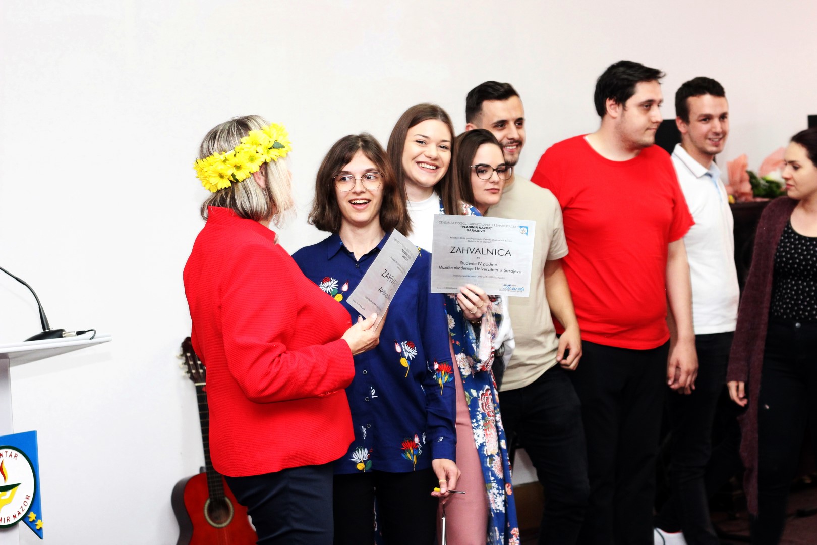Studenti četvrte godine Odsjeka za muzičku teoriju i pedagogiju Muzičke akademije Univerziteta u Sarajevu, koji pohađaju predmet Metodika muzičke nastave, posjetili su Centar “Vladimir Nazor” u proteklom semestru. Tokom posjete koja je realizovana u pratnji višeg asistenta mr. Nermina Ploskića i direktorice Centra, prof. Maide Idrizović, studenti su imali priliku upoznati se s radom i djelovanjem Centra.