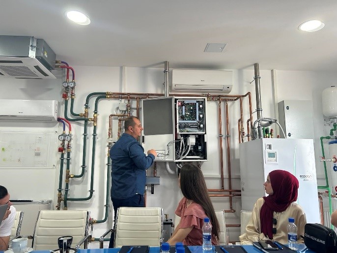 DELTRON d.o.o. je kompanija koja se bavi distribucijom, servisiranjem i održavanjem kvalitetne klimatizacijske opreme, te izvođenjem brojnih projekata u građevinskom sektoru, kao i svih vrsta instalacijskih radova. Također, dio su švedske grupacije Beijer Ref, jedne od najvećih europskih i svjetskih distributera klimatizacijske i rashladne opreme. Ova posjeta bila je prilika za studente da čuju o iskustvima i izazovima rada u ovoj kompaniji, ali i da vide setup nekoliko različitih sistema grijanja koje su zaposlenici Deltron-a osposobili u svrhu održavanja obuka i treninga. Studenti su mogli vidjeti radijatorski i podni sistem grijanja s toplotnom pumpom kao izvorom toplote, kao i ventilokonvektore različitog načina ugradnje (stropni, zidni i podni).