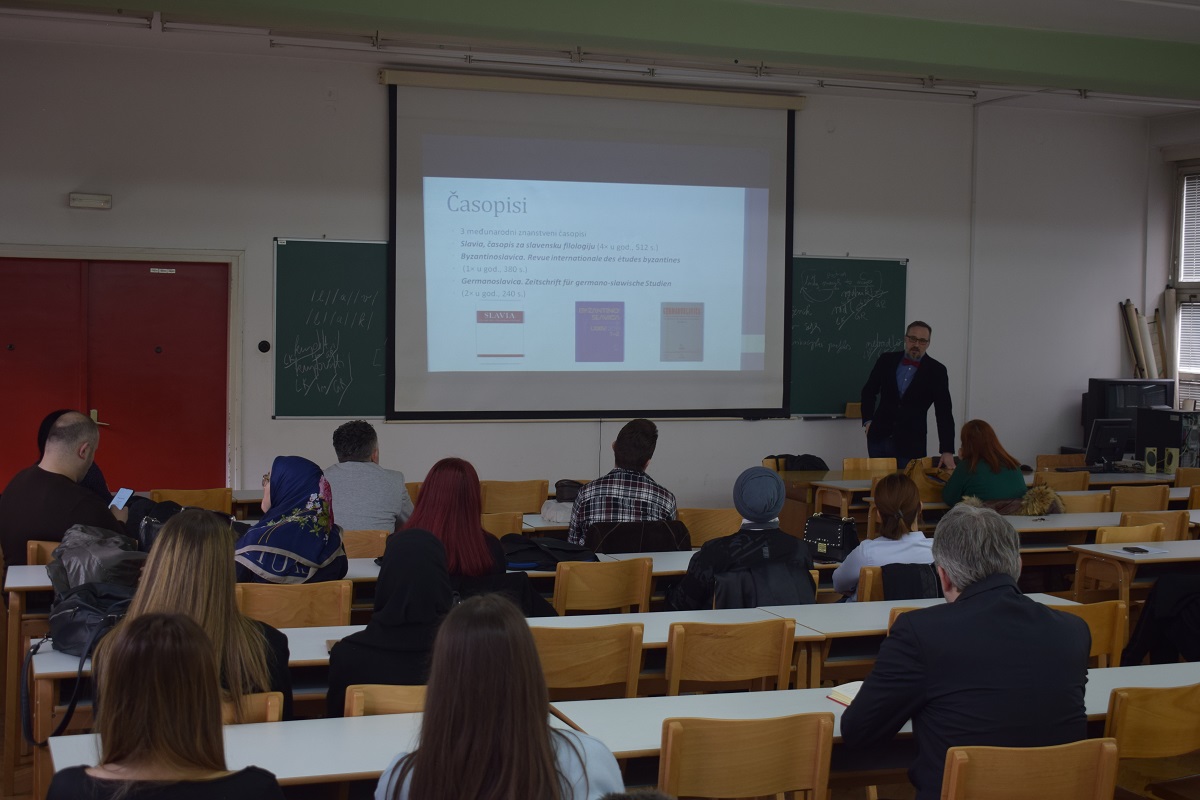 Imali smo čast slušati izlaganje Mgr. Václava Čermáka, Ph.D, direktora Slavističkog instituta Češke akademije nauka u okviru kojeg je predstavljen rad i naučno djelovanje Slavističkog instituta koji je osnovan 1921. godine. U uvodnom dijelu, pozdravim i motivirajućim govorom obratila se zamjenica ambasadorice Republike Češke u Sarajevu -Sonja Ubović koja je izrazila zadovoljstvo za organiziranje ovakvog skupa i izrazila nadu i mogućnosti buduće saradnje. Uz moderiranje dr. Erme Ramić-Kunić, koordinatora za saradnju sa Slavističkim institutom u Pragu, prisutni su bili u prilici da čuju korisne informacije o Slavističkom institutu i prilikama koje se nude kroz aktivnog sudjelovanja u naučnim projektima ili objavljivanje radova u vrhunskim časopisima, kao i postdoktorskim usavršavanjima. Informacije o Slavističkom institutu, odjeljenjima, projektima, časopisima Byzantinoslavica, Germanoslavica, Slavia dostupne su na internetskoj stranici http://www.slu.cas.cz/ Predavanje je održano 6. 3. 2023. na Filozofskom fakultetu Univerziteta u Sarajevu, a u organizaciji Instituta za jezik Univerziteta u Sarajevu (u saradnji s Filozofskim fakultetom), u okviru manifestacije Dani Instituta.