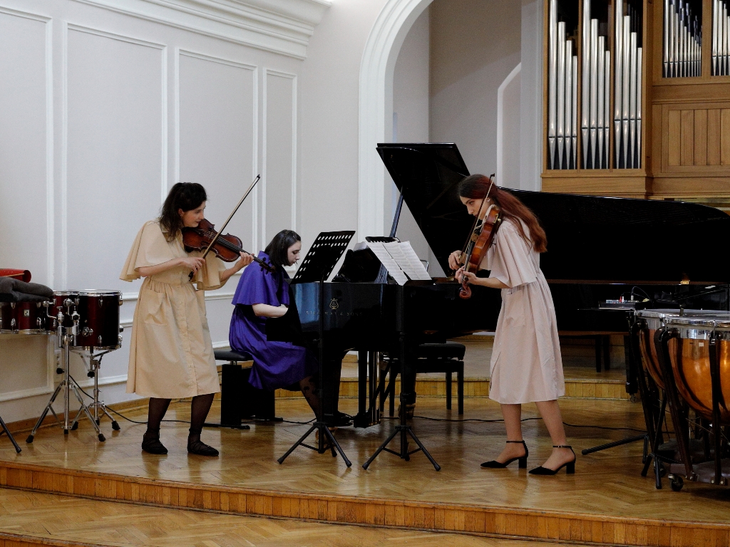 Izvedbom drugog stava “Pantoum (Assez vif)” iz Klavirskog trija u a-molu, M. 67 Mauricea Ravela predstavio se trio Larisa Lejla Droce (violina), Selma Sulejmanagić (viola) i Iva Lazić (klavir).