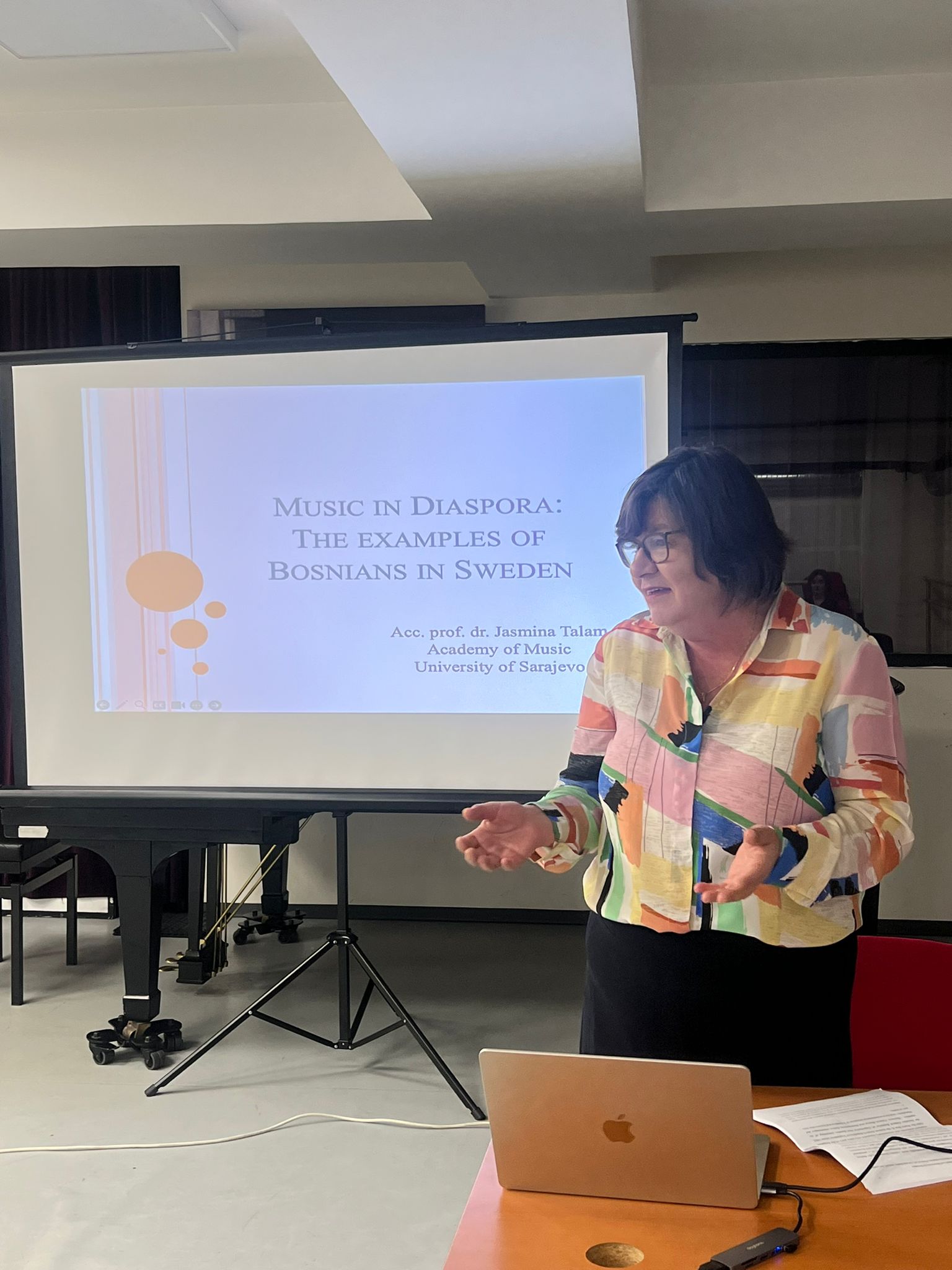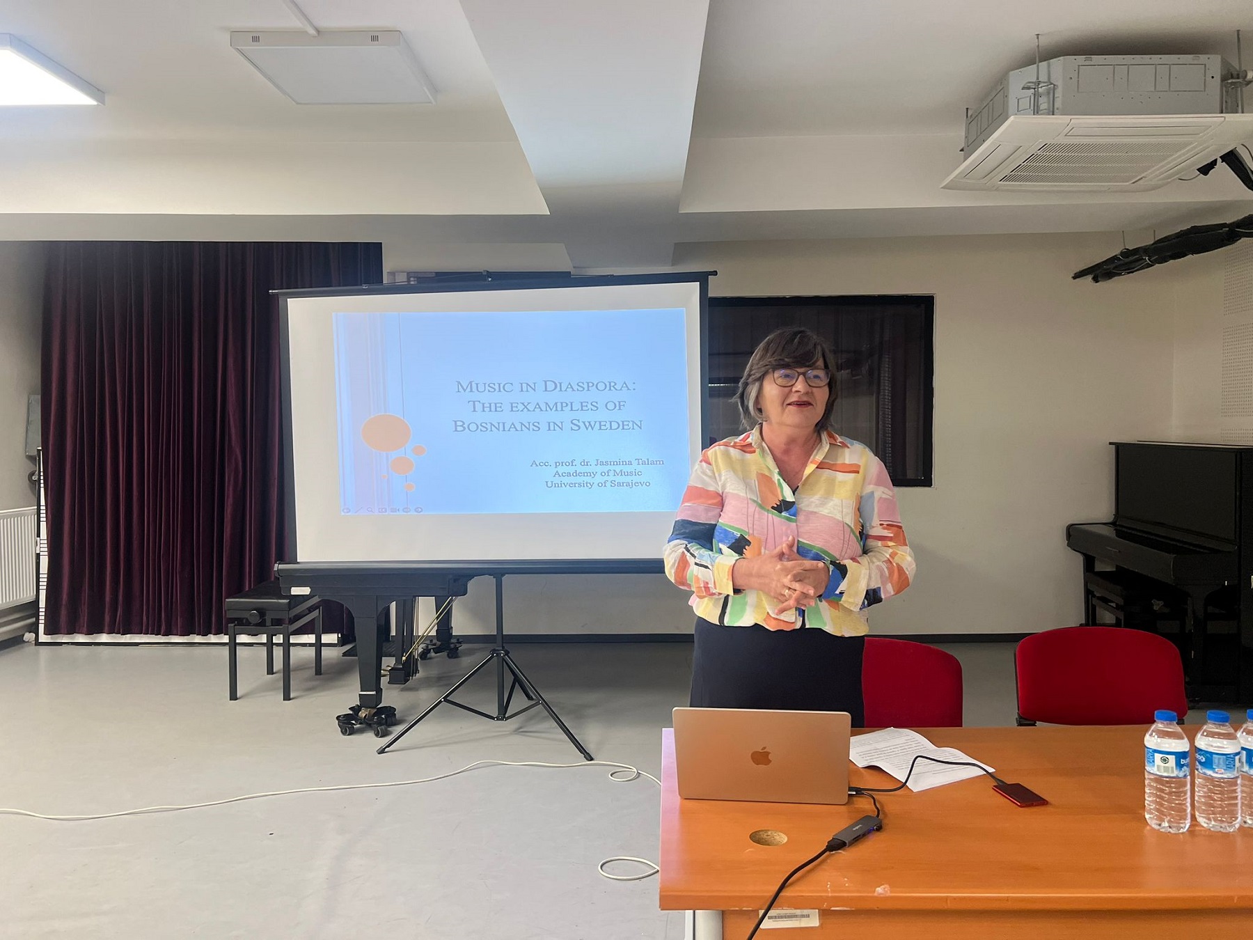 U okviru programa ERASMUS+, acc. prof. dr. Jasmina Talam održala je niz predavanja na Odsjeku za muzikologiju Državnog konzervatorija Univerziteta u Istanbulu. Akademkinja Talam je prisustvovala i prezentacijama studentskih istraživačkih projekata, te aktivno učestvovala u diskusiji o metodološkim pristupima u etnomuzikološkim istraživanjima.