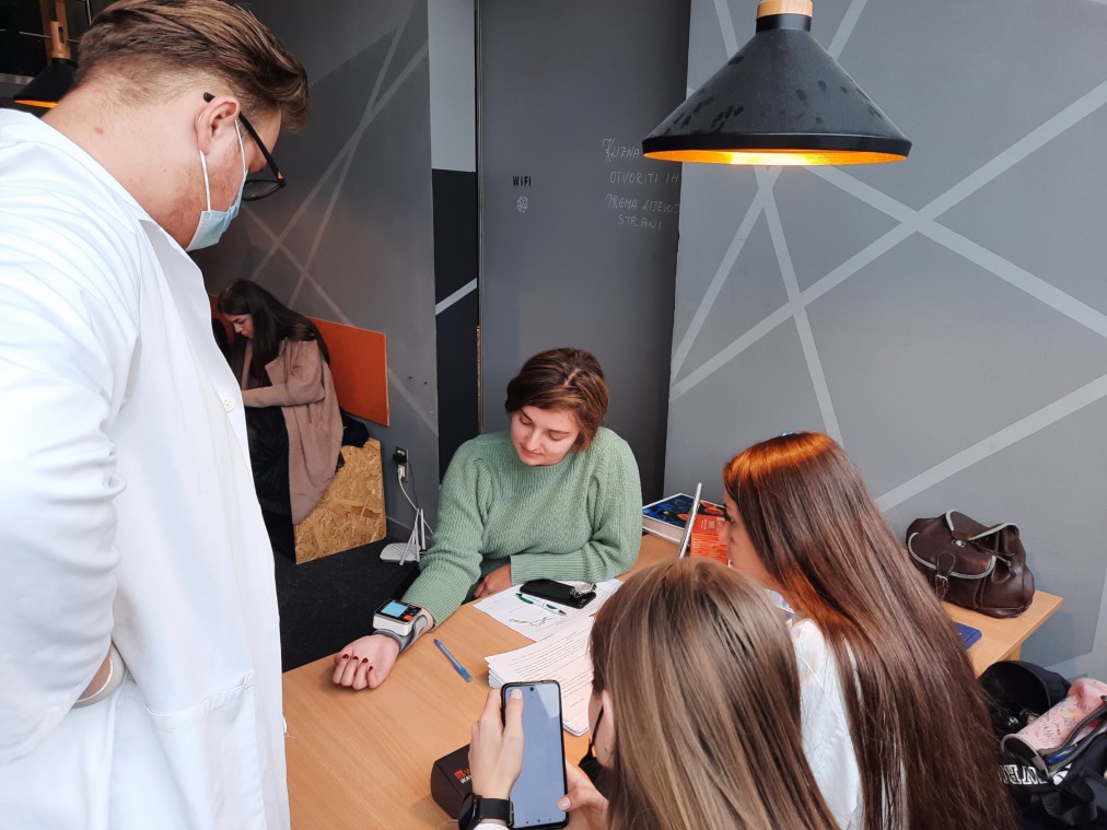 Studenti su provodili antropomoetrijska mjerenja, određivali nivo glukoze u kapilarnoj krvi, mjerili krvni pritisak i određivali krvne grupe.
