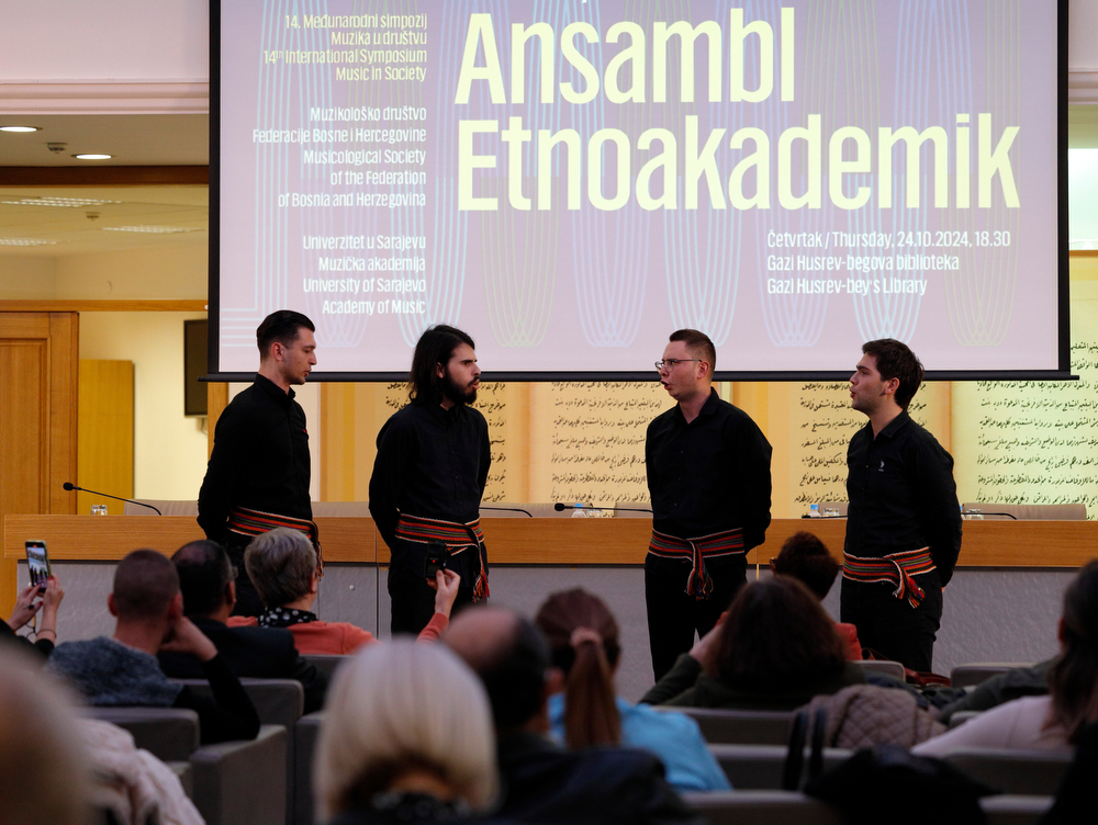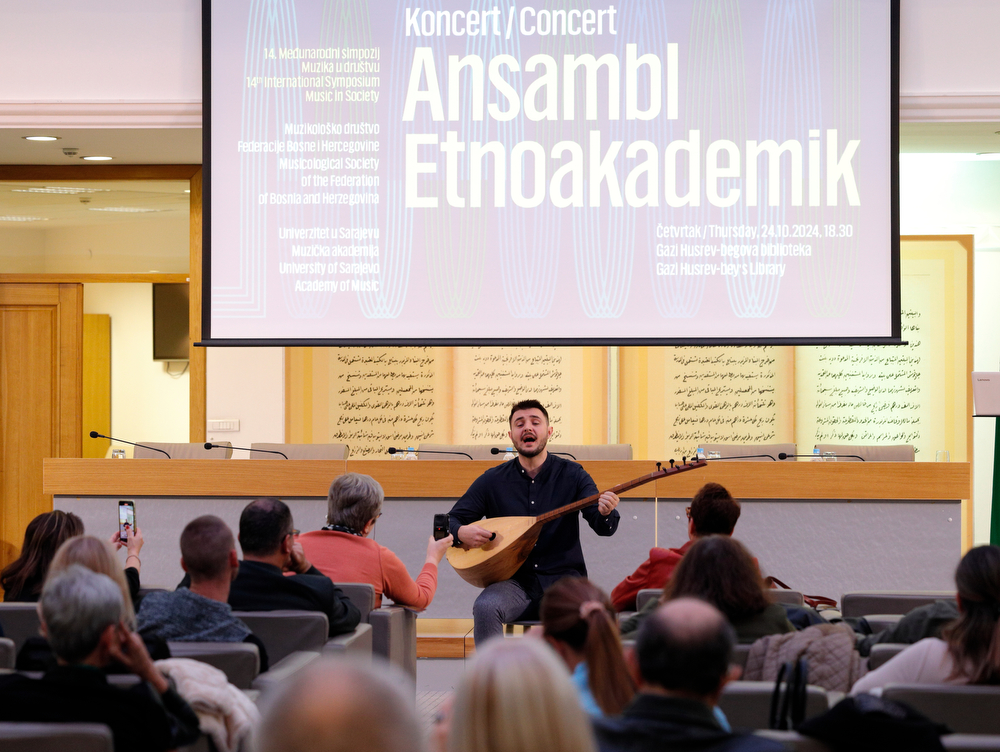 U organizaciji Muzikološkog društva FBiH i Muzičke akademije Univerziteta u Sarajevu, od 24. do 26. oktobra 2024. godine u Gazi Husrev-begovoj biblioteci održan je 14. Međunarodnog simpozija “Muzika u društvu”, najznačajniji bosanskohercegovački i jedan od vodećih regionalnih naučnih skupova ove vrste, koji se bijenalno održava od 1998. godine. Načelna tema Simpozija “muzika u društvu”, označava njegovo usmjerenje ka višedimenzionalnom, diversificiranom i transdisciplinarnom diskursu savremene nauke o muzici, kako u bosanskohercegovačkim, tako i u internacionalnim okvirima.