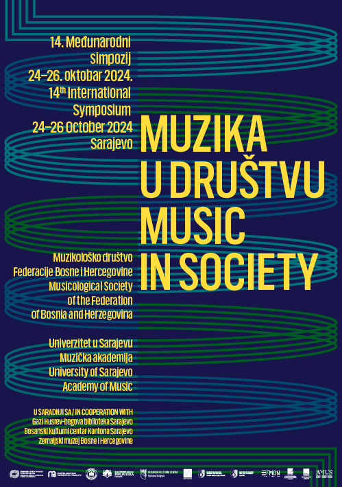 14. Međunarodni simpozij “Muzika u društvu” održan je u saradnji sa Gazi Husrev-begovom bibliotekom, Bosanskim kulturnim centrom KS, Zemaljskim muzejom BiH, a uz podršku Ministarstva za nauku, visoko obrazovanje i mlade Kantona Sarajevo, Ministarstva kulture i sporta Kantona Sarajevo, Federalnog ministarstva nauke i obrazovanja, Fondacije za muzičke, scenske i likovne umjetnosti, Fondacije za izdavaštvo i AMUS – Asocijacije kompozitora – muzičkih stvaralaca.
