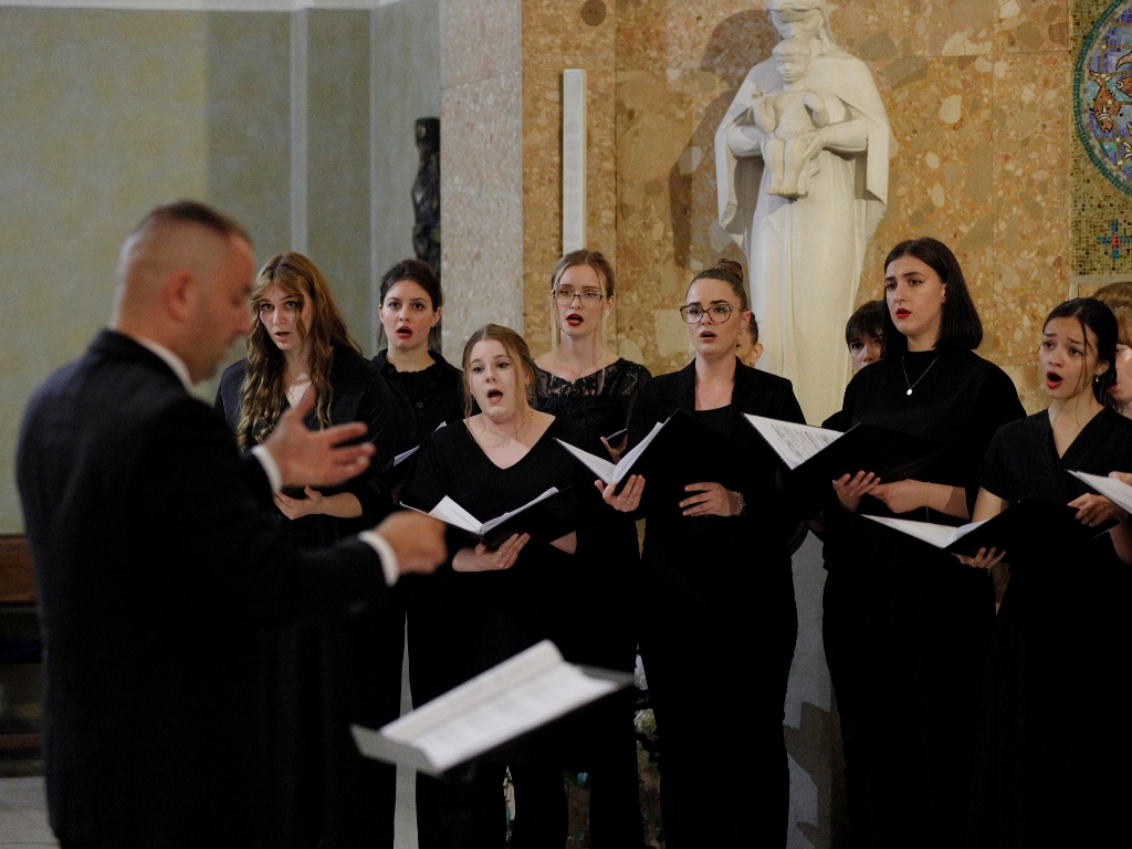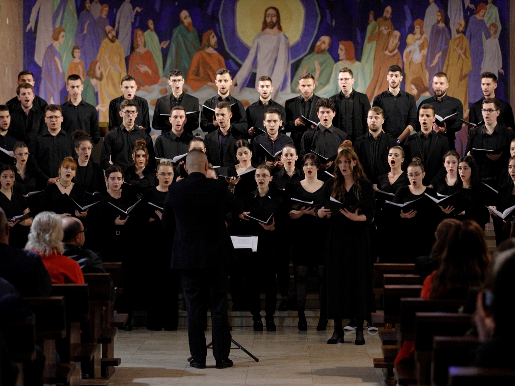 Program je uključio i “Cantique de Jean Racine”, op. 11, za hor i klavir Gabriela Fauréa, “Stranoe Roždestvo” Georgy Sviridova, “Rum, dum, dum” Dragana Šuplevskog, “Potkozarje” Vojina Komadine, “Mislio sam” Avde Smailovića, engleska tradicionalna pjesma “Early One Morning” i “Golema Č’čkalica” Dragane Veličković.