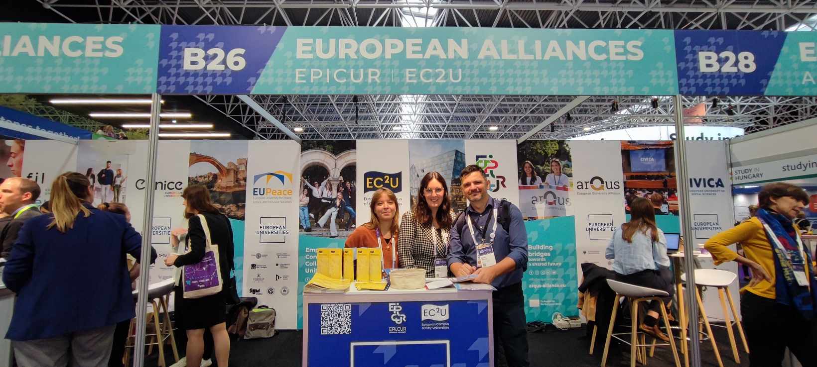 Na EAIE su predstavljene neke od evropskih alijansi koje imaju za cilj jačanje evropskih kapaciteta jačanjem inovacija kroz saradnju i protok znanja između visokog obrazovanja, stručnog obrazovanja i obuke, te šireg društveno-ekonomskog okruženja, uključujući istraživanje. Jedna od evropskih alijansi koje su imali svoje predstavništvo na sajmu je i EUPeace (European University for Peace, Justice, and Inclusive Societies) čiji je partner i naš univerzitet. EUPeace alijansa/mreža je posebno fokusirana na povećanju efekata internacionalizacije pod prefiksom njegovanja mirnog, pravednog i inkluzivnog evropskog društva, na različitim nivoima. Na ovaj način, naš univerzitet nastavlja dugogodišnju tradiciju međuuniverzitetske saradnje za razvoj kulture dijaloga i promocije mira. EUPeace alijansu čini devet evropskih univerziteta, a od kojih je nekoliko (uključujući i koordinatora Philipps Univerzitet u Marburgu) prisustvovalo pomenutom sajmu i predstavilo aktivnosti alijanse.