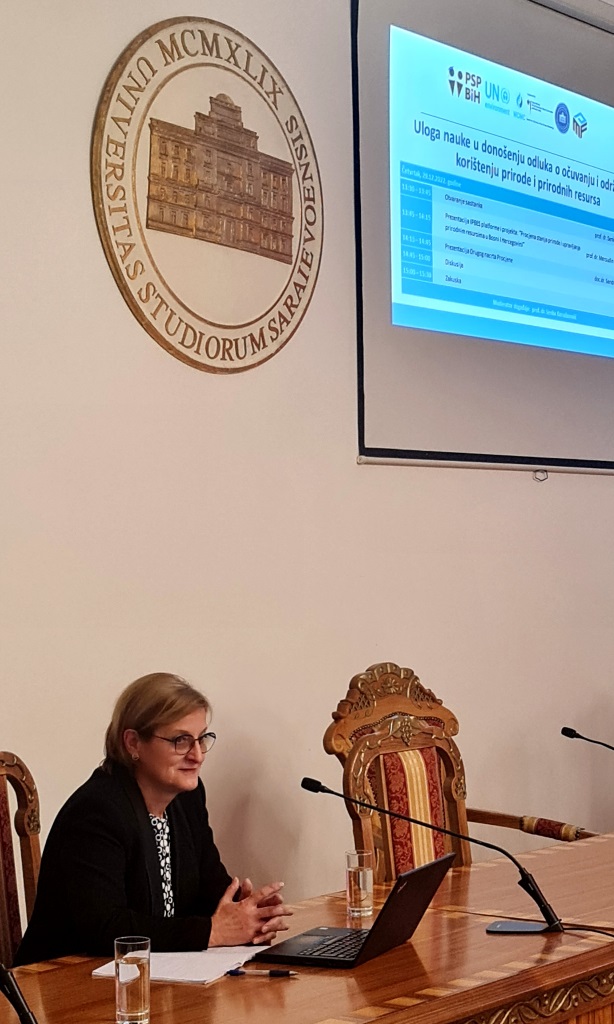 Cilj događaja „Uloga nauke u donošenju odluka o očuvanju i održivom korištenju prirode i prirodnih resursa“ bio je upoznati naučnu zajednicu sa ciljevima međunarodnog projekta koji provodi Univerzitet u Sarajevu pod nazivom „Podržavanje donošenja odluka i jačanje kapaciteta za podršku IPBES-u kroz nacionalnu procjenu ekosistema” (engl. “Supporting decision making and building capacity to support IPBES through national ecosystem assessments”; skraćeni naziv: Procjena stanja prirode i upravljanja prirodnim resursima u Bosni i Hercegovini).
