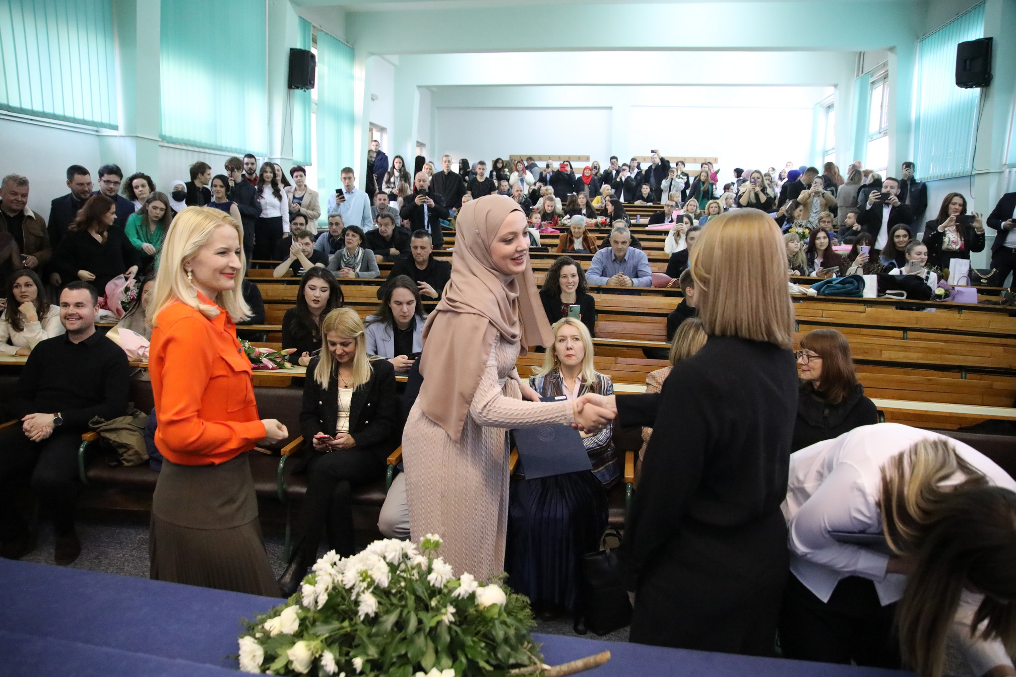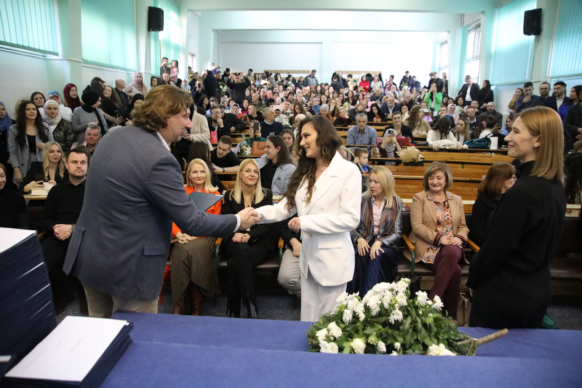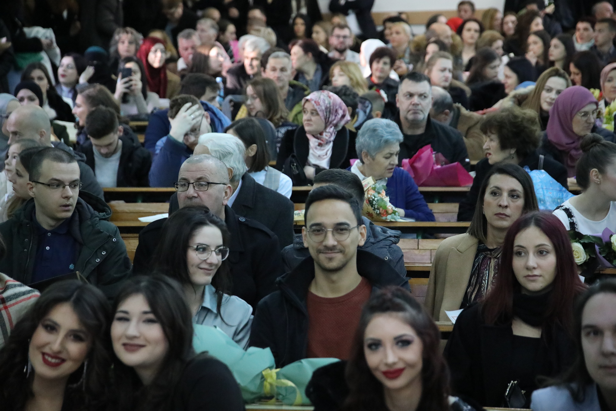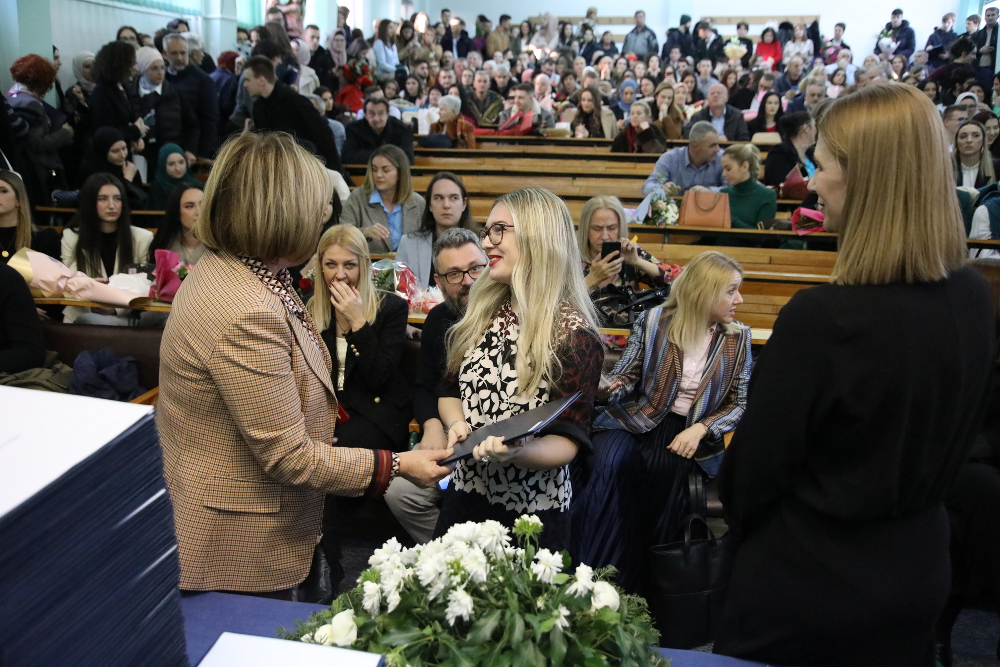 U ime dekana prof. dr. Kenana Šljive, prodekanesa za nastavu i studentska pitanja prof. dr. Jadranka Kolenović-Đapo i prodekanesa za naučnoistraživački rad, međunarodnu saradnju i izdavaštvo doc. dr. Minka Džanko čestitale su magistrantima i diplomantima, te istakle da je ovaj dan vrhunac njihove marljivosti, istrajnosti i beskrajnih sati posvećenih proširivanju znanja i sticanju vještina potrebnih za njihovo daljnje usavršavanje. Ovom prigodom prodekanese su obavezale diplomante i magistrante da svjesno pronose ideju i duh humanističkih i društvenih znanosti te da budu najbolji ambasadori našeg Fakulteta.