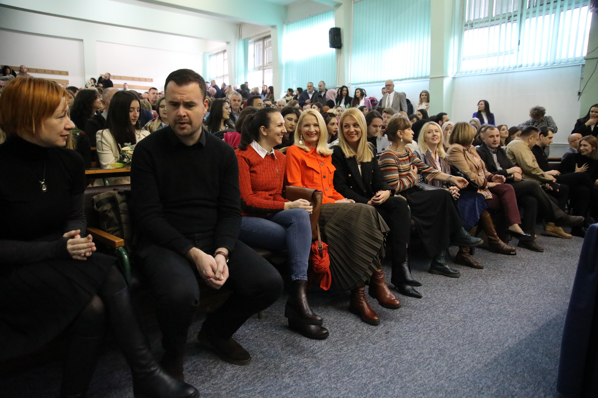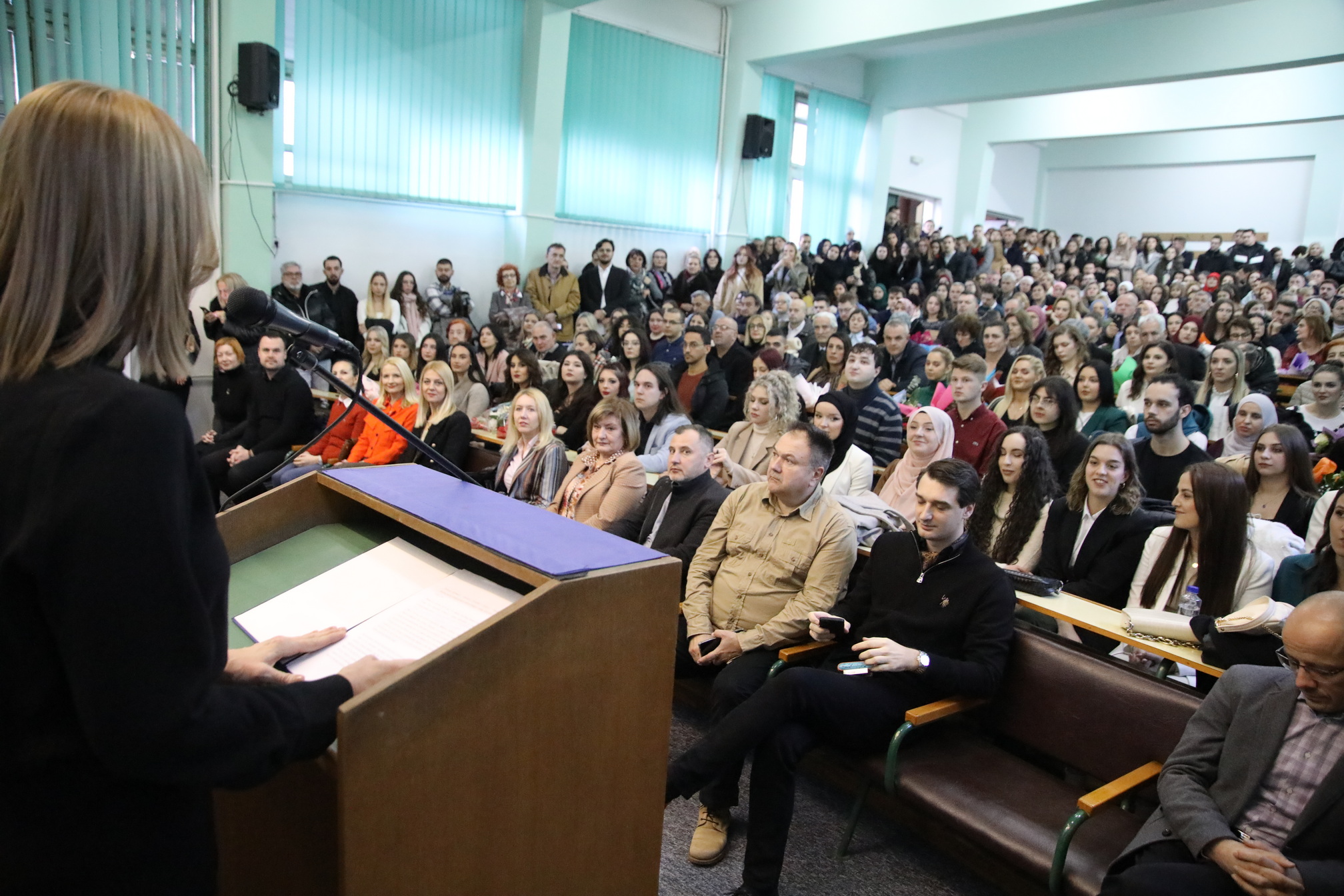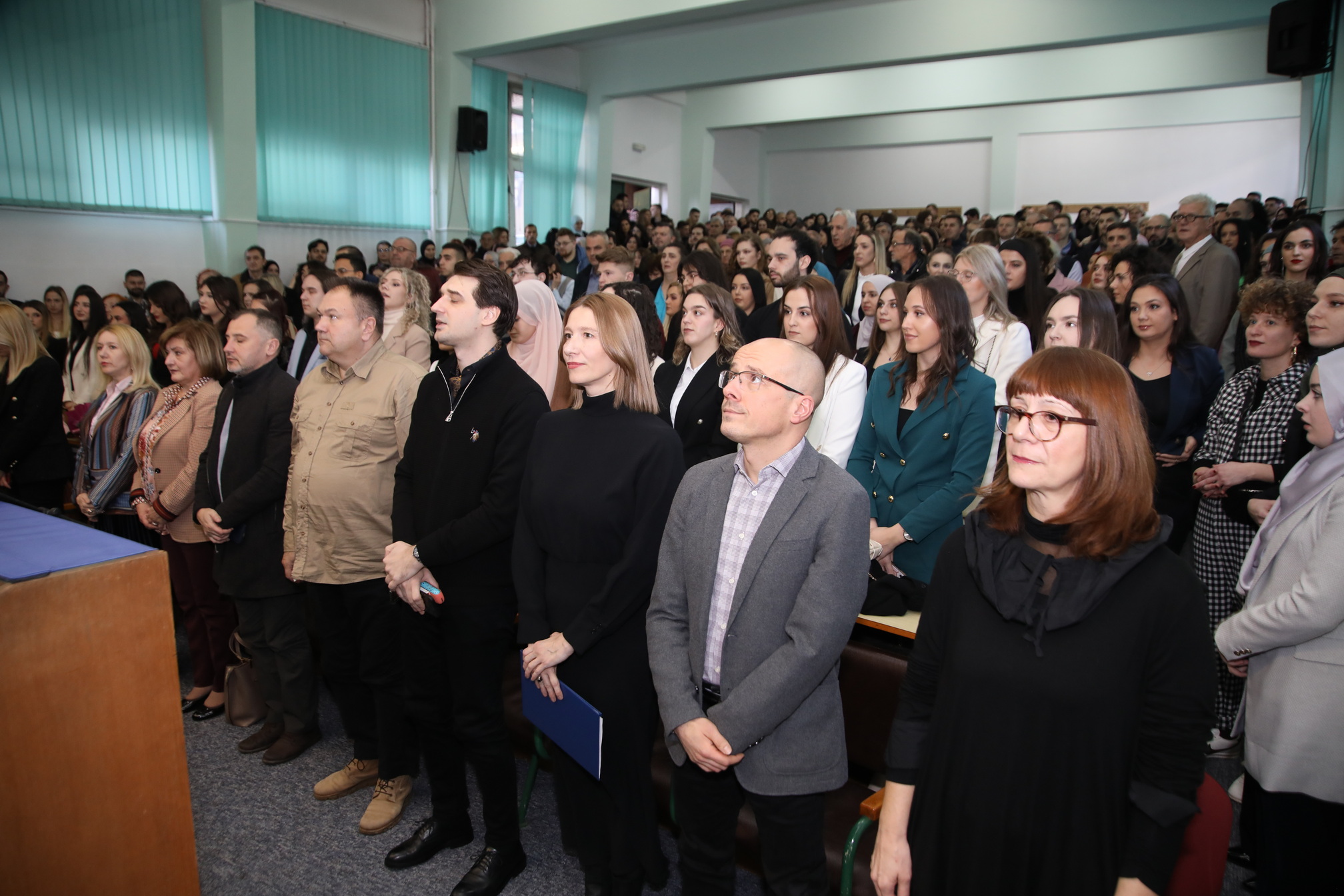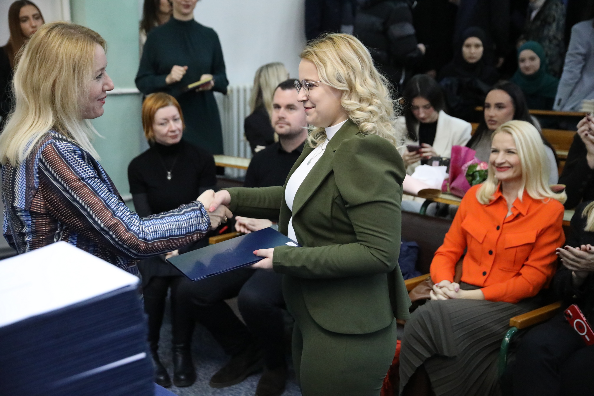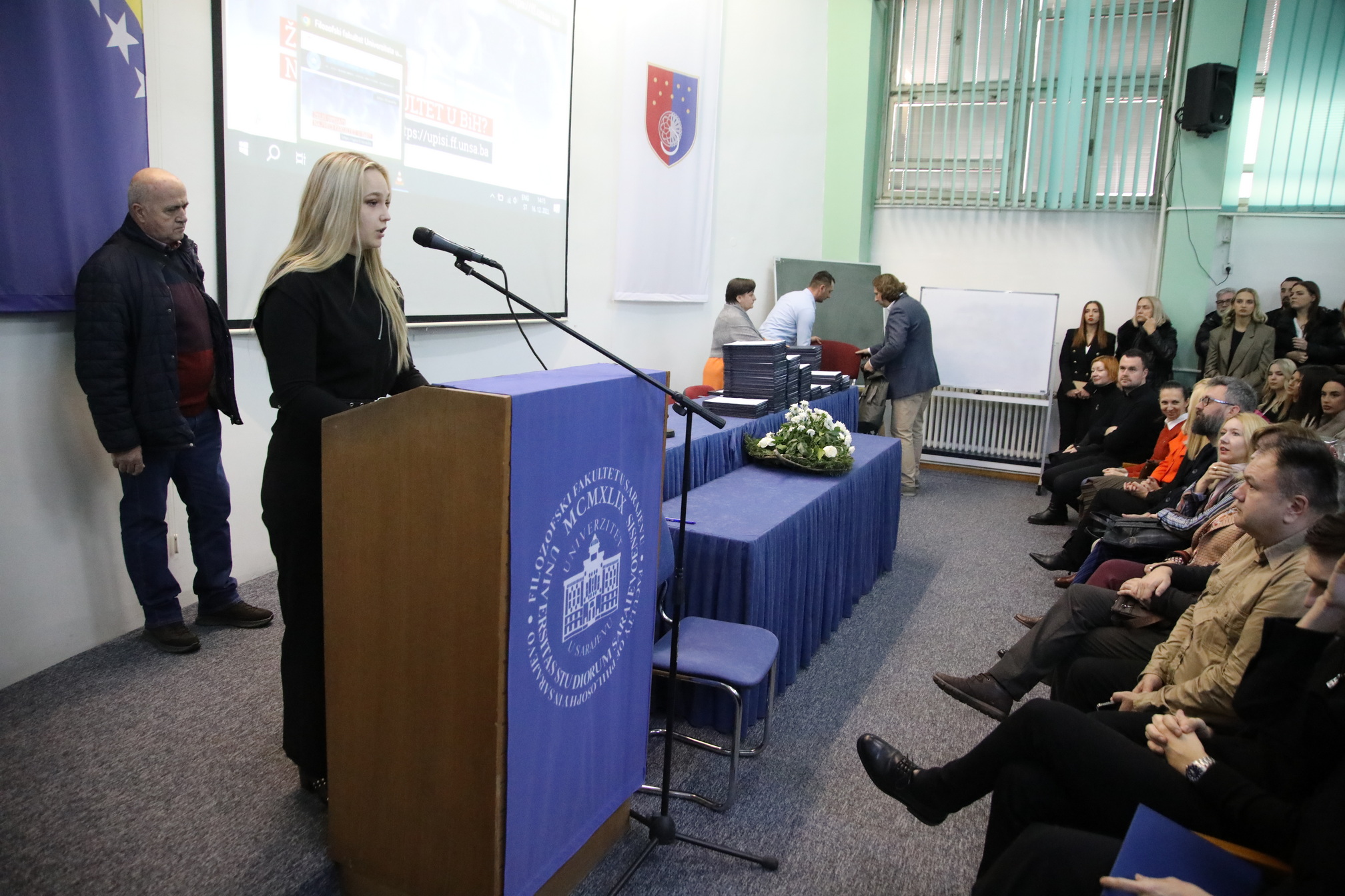 U ime dekana prof. dr. Kenana Šljive, prodekanesa za nastavu i studentska pitanja prof. dr. Jadranka Kolenović-Đapo i prodekanesa za naučnoistraživački rad, međunarodnu saradnju i izdavaštvo doc. dr. Minka Džanko čestitale su magistrantima i diplomantima, te istakle da je ovaj dan vrhunac njihove marljivosti, istrajnosti i beskrajnih sati posvećenih proširivanju znanja i sticanju vještina potrebnih za njihovo daljnje usavršavanje. Ovom prigodom prodekanese su obavezale diplomante i magistrante da svjesno pronose ideju i duh humanističkih i društvenih znanosti te da budu najbolji ambasadori našeg Fakulteta.