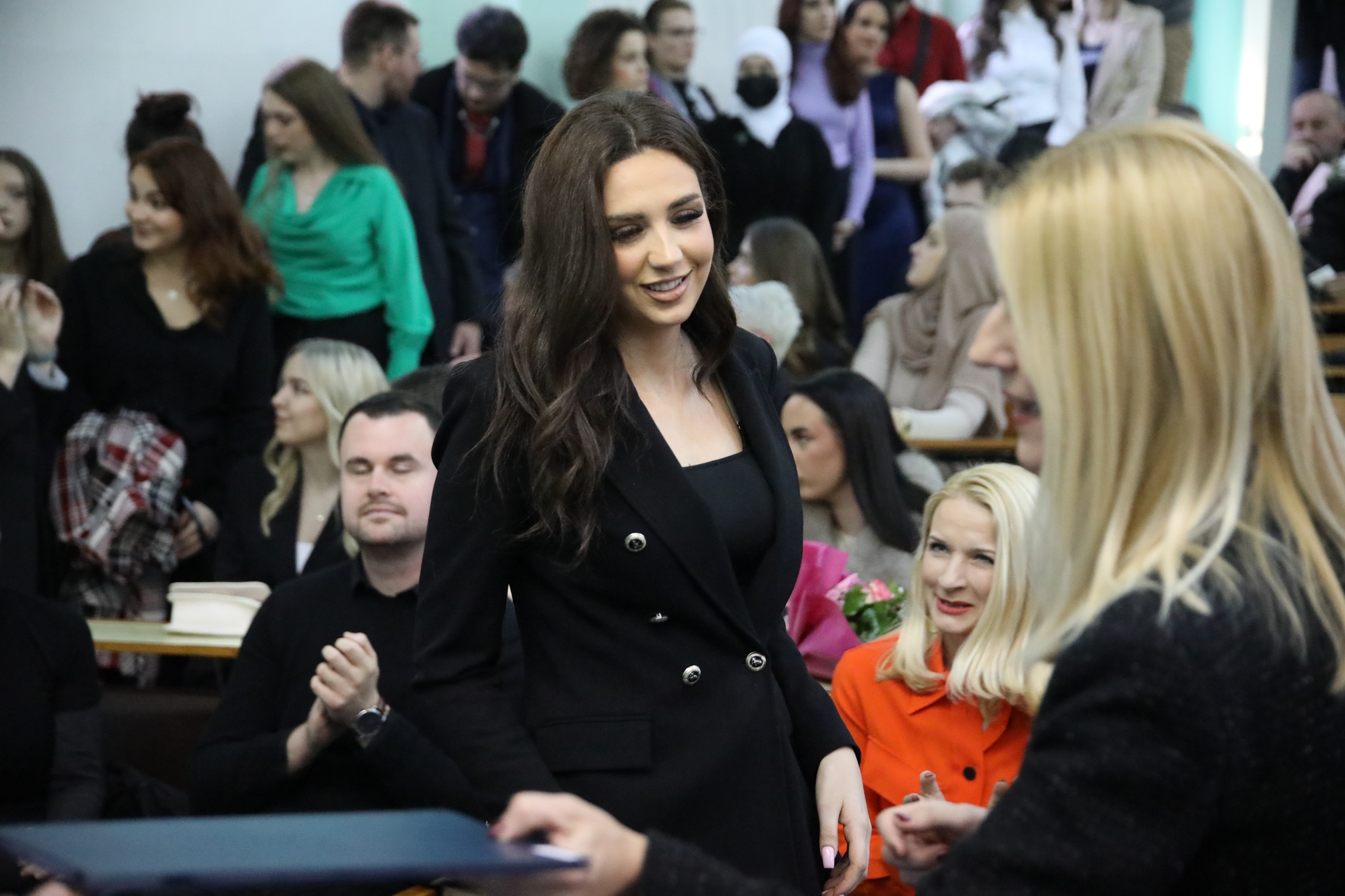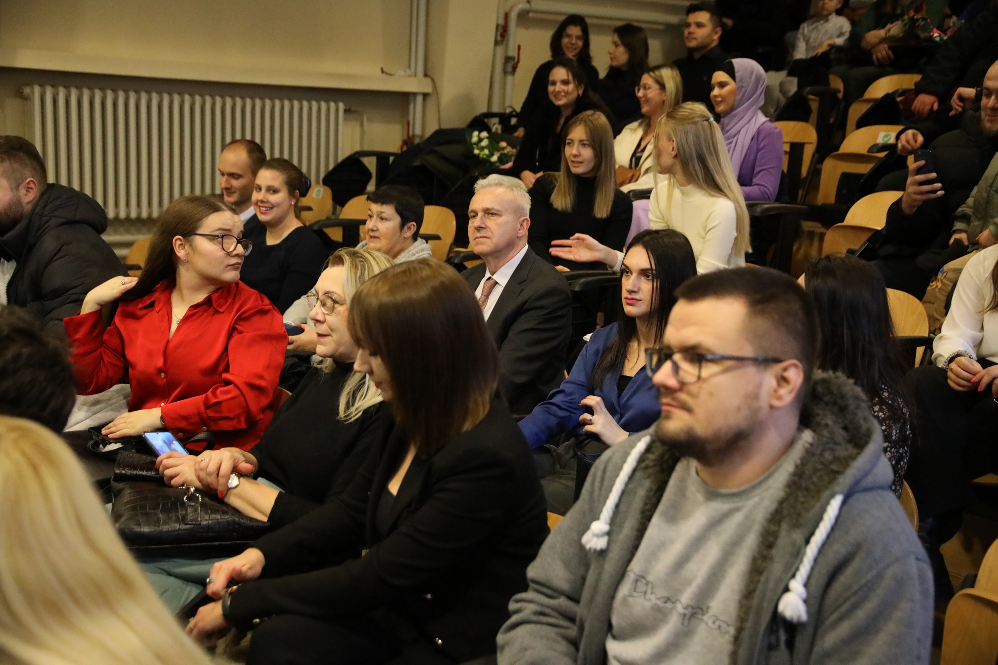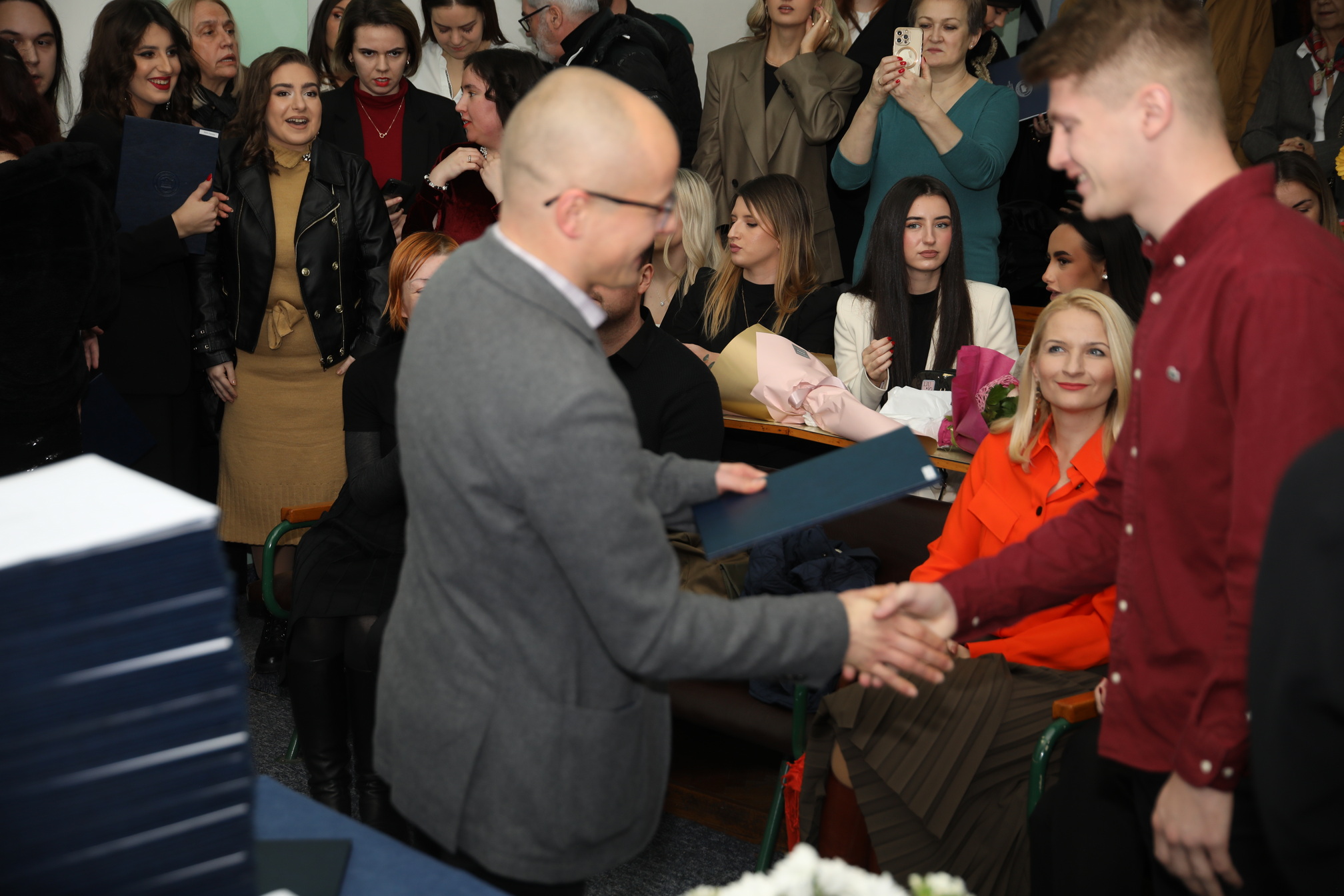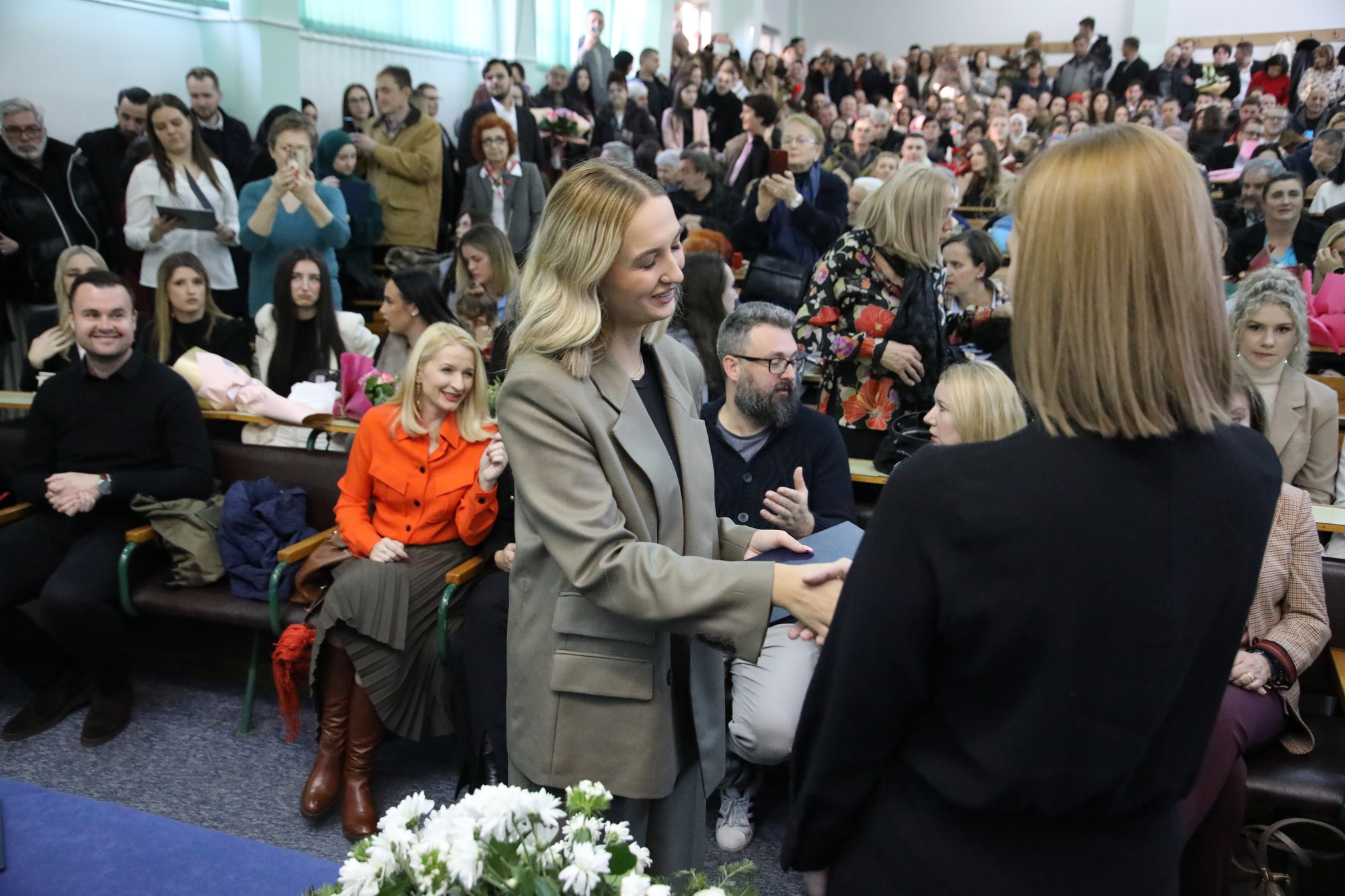 U ime dekana prof. dr. Kenana Šljive, prodekanesa za nastavu i studentska pitanja prof. dr. Jadranka Kolenović-Đapo i prodekanesa za naučnoistraživački rad, međunarodnu saradnju i izdavaštvo doc. dr. Minka Džanko čestitale su magistrantima i diplomantima, te istakle da je ovaj dan vrhunac njihove marljivosti, istrajnosti i beskrajnih sati posvećenih proširivanju znanja i sticanju vještina potrebnih za njihovo daljnje usavršavanje. Ovom prigodom prodekanese su obavezale diplomante i magistrante da svjesno pronose ideju i duh humanističkih i društvenih znanosti te da budu najbolji ambasadori našeg Fakulteta.