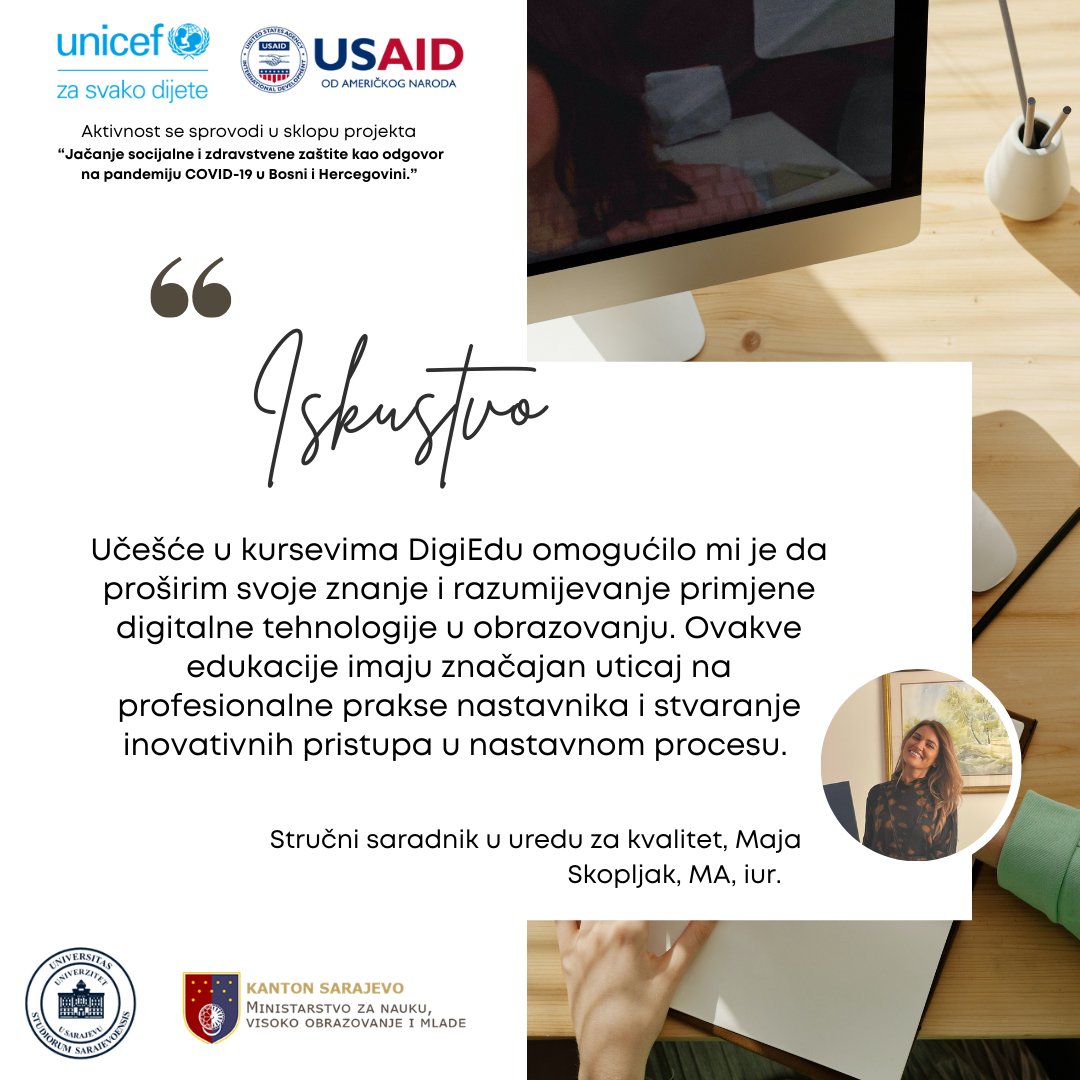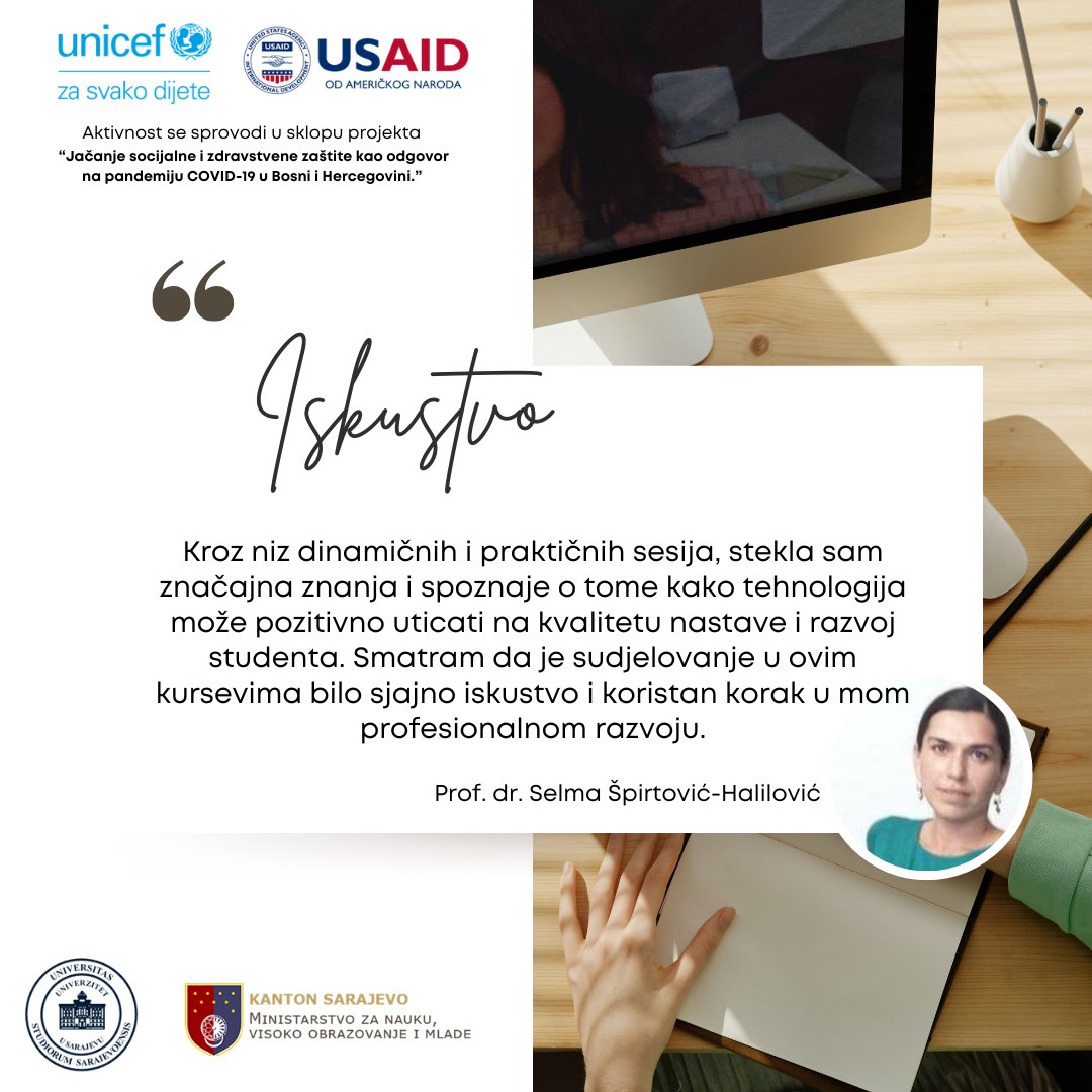 Sarajevo 15.03.2023. Uz rastući značaj tehnologije u obrazovanju, nastavnici moraju posjedovati digitalne kompetencije kako bi efikasno integrirali tehnologiju u svoju nastavnu praksu. Istovremeno, važno je da nastavnici posjeduju pedagoške vještine koje će im omogućiti da angažuju i motivišu studente. Kako bi se odgovorilo na ovu potrebu, Univerzitet u Sarajevu je kreirao platformu koja nudi niz resursa dizajniranih za unaprijeđenje digitalnih i pedagoških kompetencija nastavnog osoblja.