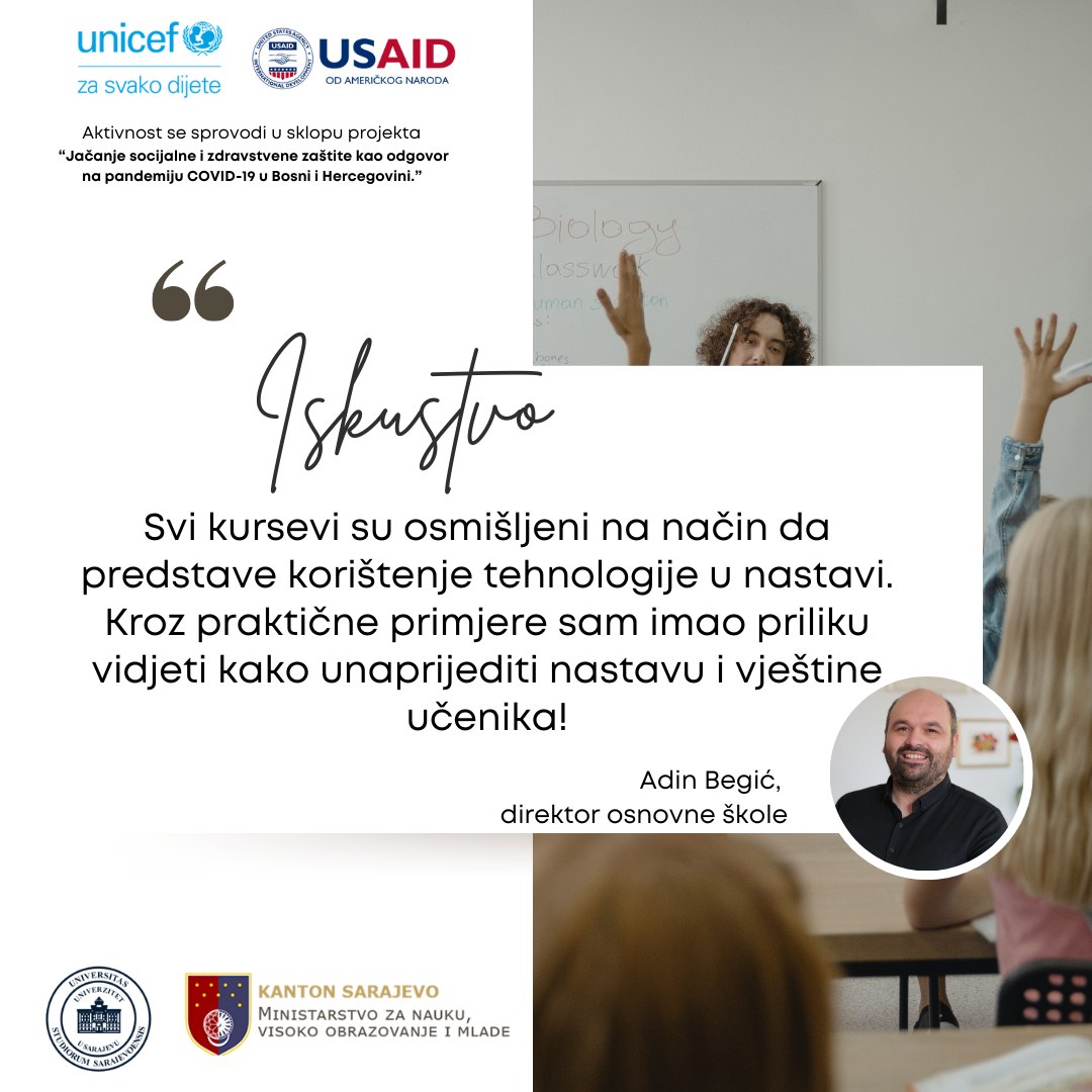 Courtney Chubb, direktorica USAID-a u Bosni i Hercegovini, naglasila je da su ulaganja u izgradnju i unapređenje kompetencija nastavnika od ključnog značaja za razvoj zemlje. "Poboljšanje kvaliteta obrazovanja je u središtu daljeg ekonomskog razvoja Bosne i Hercegovine. USAID je ponosan na našu saradnju sa UNICEF-om i drugim partnerima na izgradnji otpornosti obrazovnog sistema i njegovom jačanju za 21. vijek."