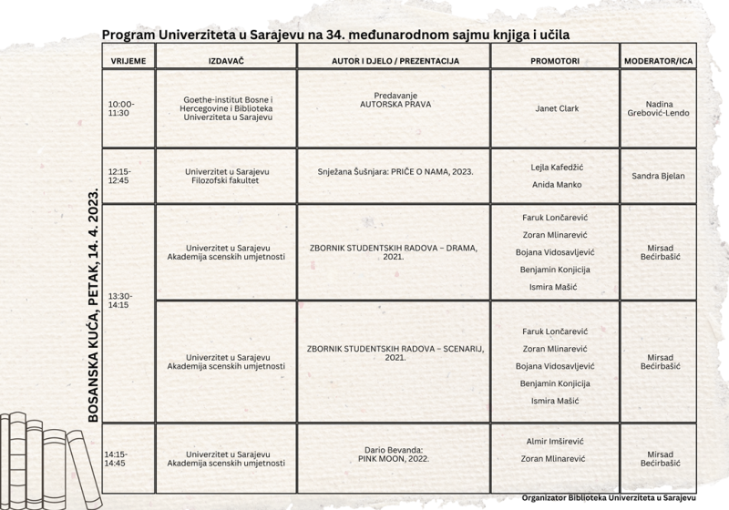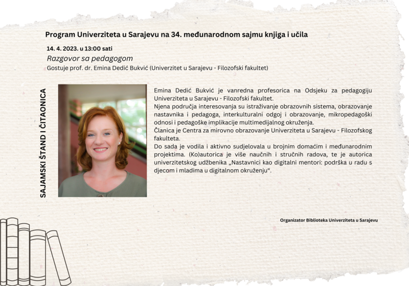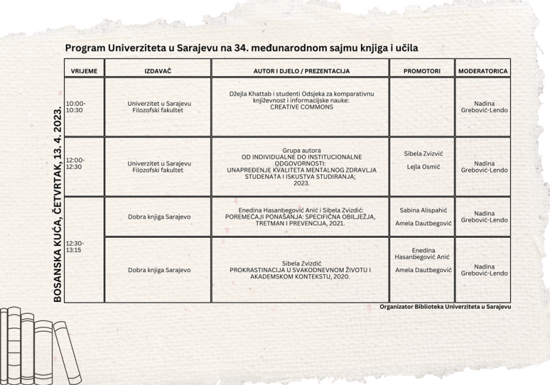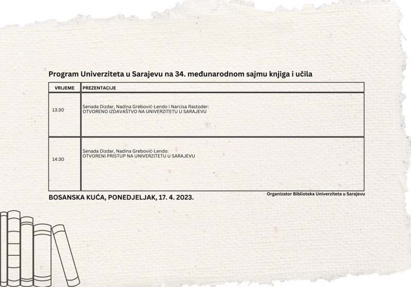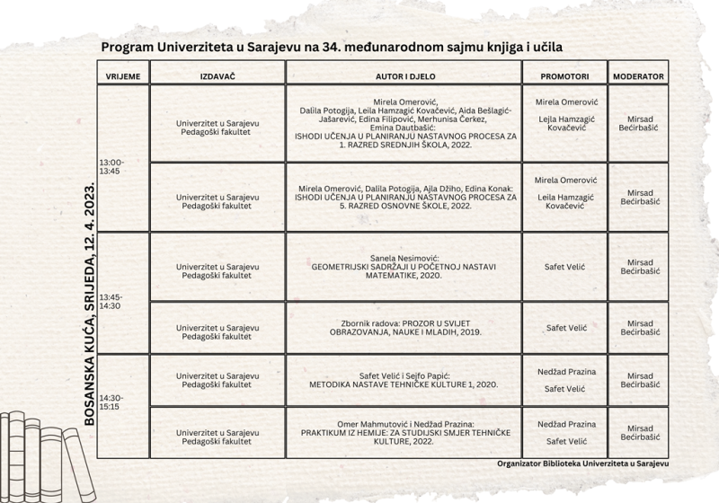 Univerzitet u Sarajevu učestvuje na XXXIV Međunarodnom sajmu knjiga i učila | PROGRAM