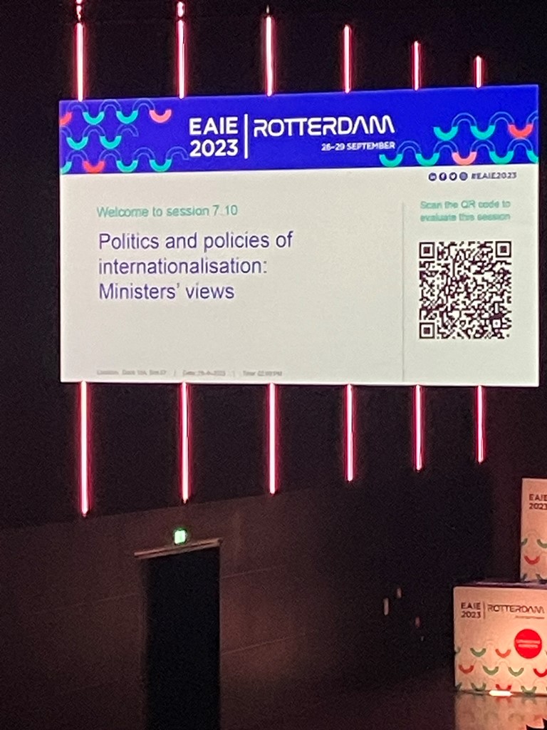 U periodu 26 - 29. 09. 2023. godine, u Roterdamu (Holandija) održana je 33 EAIE konferencija i izložba visokog obrazovanja, sa više od 6700 učesnika iz više od 100 zemalja. Univerzitet u Sarajevu je predstavila prorektorica za međunarodnu saradnju prof. dr. Enita Nakaš. Na samoj konferenciji predstavljeni su novi načini prenosa znanja, tako da su se predavanja održavala u vidu klasičnih predavanja, on-line predavanja, panel diskusija, speed networking i "izviđačke vatre".