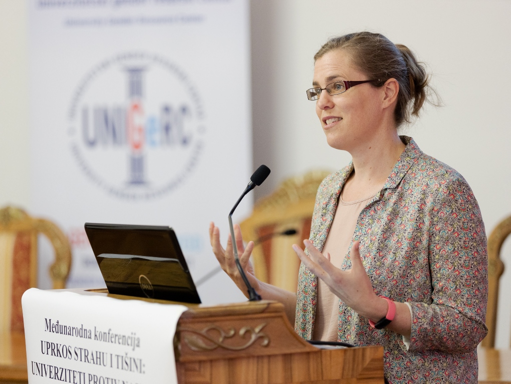Prvi radni dan je zatvorilo predavanje koje je održala prof. dr. Anna Bull (Department of Education, University of York, UK), na temu – Borba protiv seksualno nedoličnog ponašanja nastavnika/osoblja u visokom obrazovanju u UK.