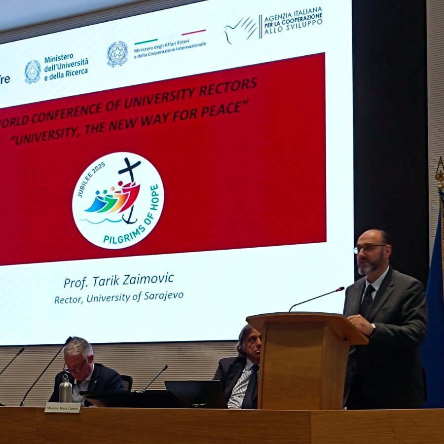 U povodu obilježavanja 25. godišnjice Rome International Seminar, događaja koji je započeo 2000. godine na Univerzitetu u Sarajevu i koji već četvrt stoljeća okuplja međunarodne studente i univerzitete, sa posebnim fokusom na zemlje koje se suočavaju s krizama, održana je Svjetska konferencija rektora pod nazivom “University, the New Way for Peace” („Univerzitet – novi put prema miru“).