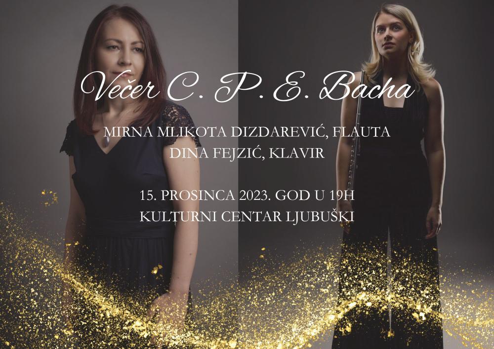 Viša asst. dr. Mirna Mlikota - Dizdarević i van. prof. mr. Dina Fejzić, održale su koncert za flautu i klavir u Kulturnom centru u Ljubuškom, 15. 12. 2023. godine. Koncert pod nazivom "Večer C. P. E. Bacha", posvećen je djelima navedenog kompozitora, a na programu su bili: C. P. E. Bach - Sonata u a molu za solo flautu C. P. E. Bach - 'Hamburger' sonata u G duru za flautu i klavir C. P. E. Bach - Koncert za flautu i klavir u G duru. Narednog dana, 16. 12. 2023., za učenike Osnovne i Srednje glazbene škole Ljubuški, upriličena je flautistička radionica.