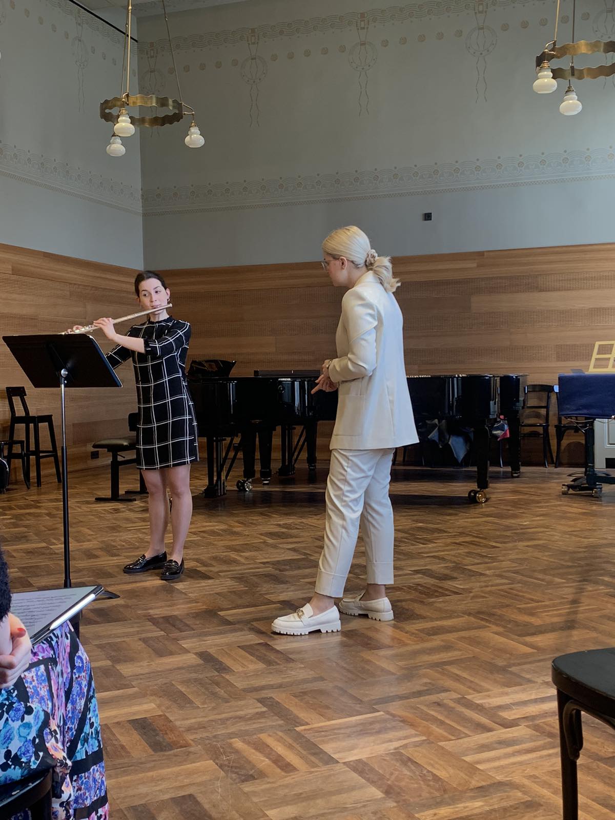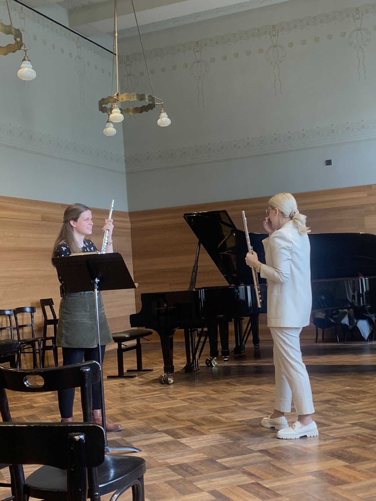 U periodu od 24. 04. do 29. 04. 2023. godine, viša ass. dr. Mirna Mlikota-Dizdarević i studentice Odsjeka za duvačke instrumente i harmoniku, smjer flauta, Tara Kušić i Stela Strand, boravile su u Budimpešti, Mađarska.