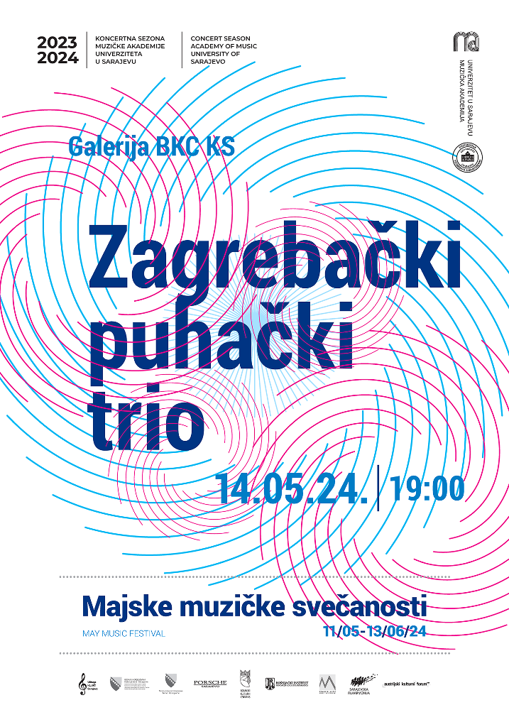 Muzička akademija Univerziteta u Sarajevu sa zadovoljstvom najavljuje koncert Zagrebačkog puhačkog trija, renomiranog ansambla sa višedecenijskom tradicijom, koji će biti upriličen u utorak, 14. maja 2024. godine u 19:00 u Galeriji Bosanskog kulturnog centra KS, u okviru 17. izdanja festivala Majske muzičke svečanosti.