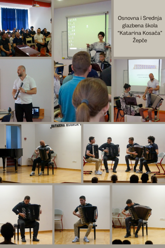 U sklopu posjeta održani su masterclassovi, predavanja na temu "Historijat i konstrukcija savremene harmonike" te koncertno prezentovana klasična harmonika.