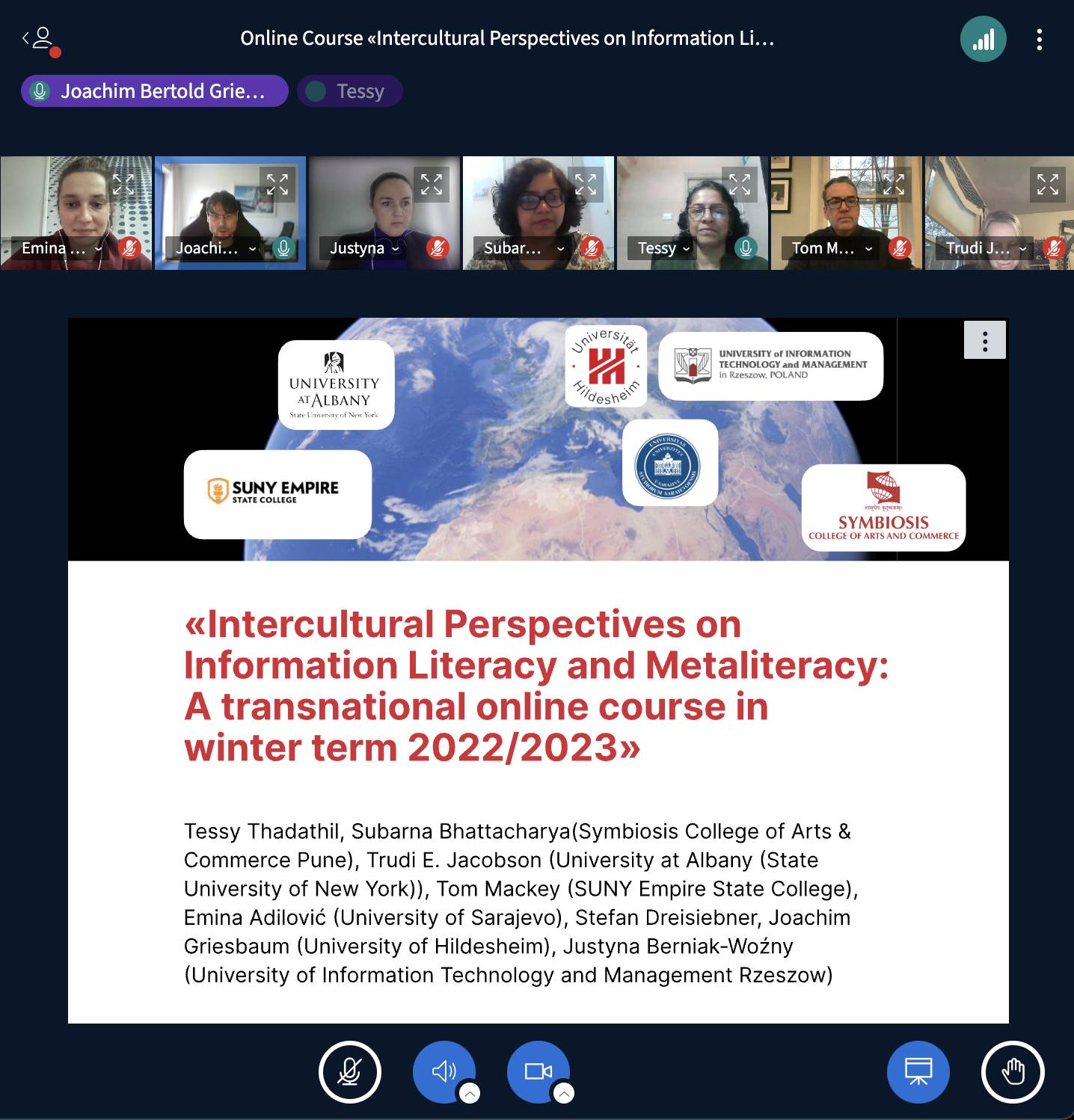 Univerzitet u Sarajevu i ove godine sudjeluje u međunarodnom projektu “Interkulturalne perspektive informacijske pismenosti i metapismenosti”. Studenti i studentice Fakulteta političkih nauka i Filozofskog fakulteta sa instruktoricom Eminom Adilović, višom stručnom saradnicom za istraživanje u Institutu za društvena istraživanja, učestvuju u zajedničkom prostoru za učenje sa mladima i instruktorima iz Njemačke, Poljske, Sjedinjenih Američkih Država i Indije. Kreirajući zajednički prostor za učenje, učesnici će u narednih mjesec dana imati priliku učiti o temama vezanim za informacijsku pismenost.